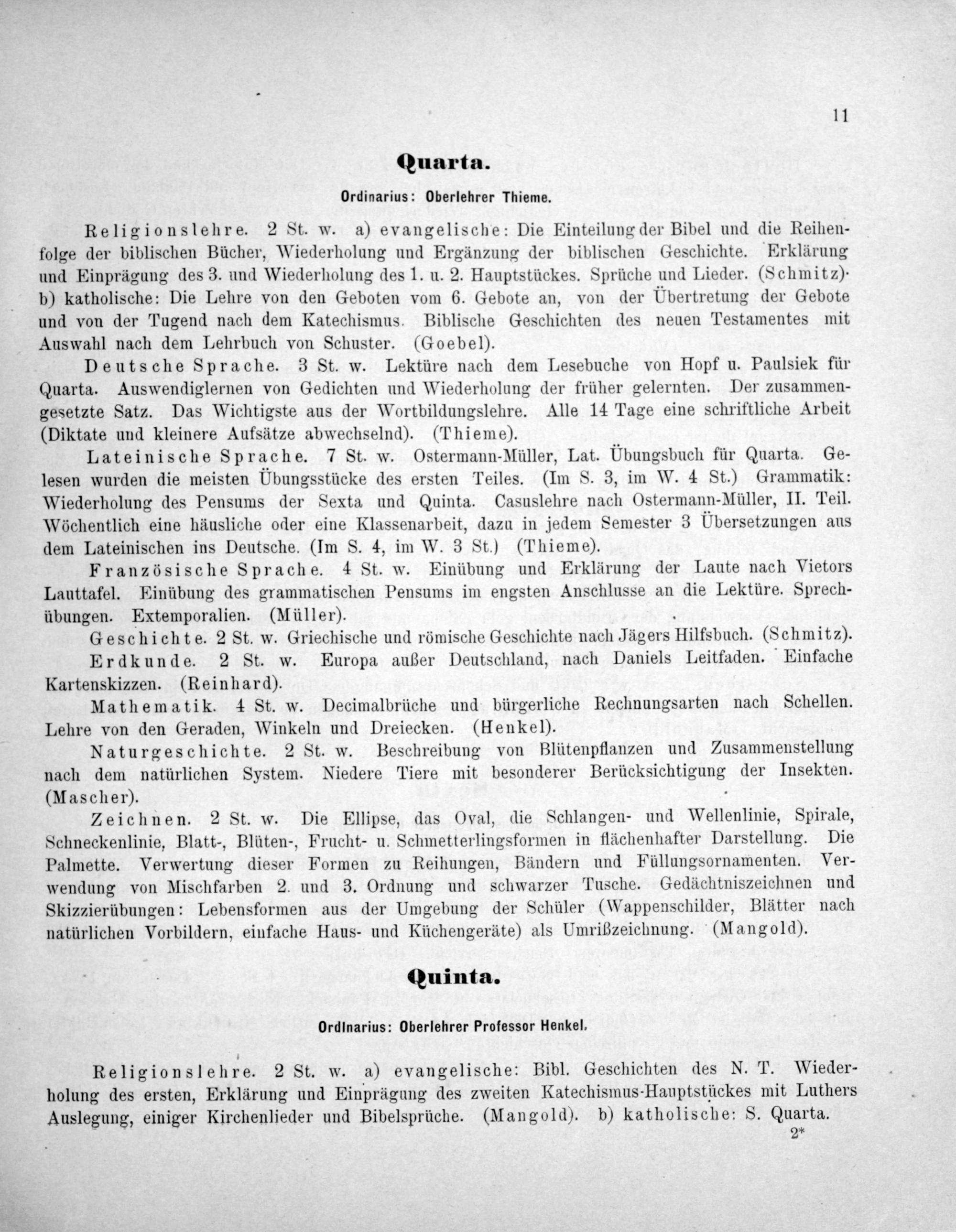 Quarta. Ordinarius: Oberlehrer Thieme.
