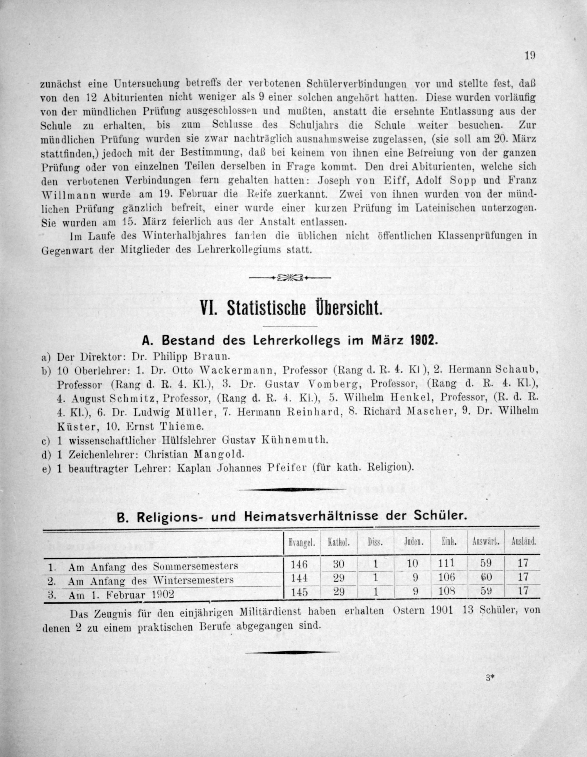 A. Bestand des Lehrerkollegs im März 1902.