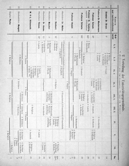 *) Bedeutet nur im Sommer,*x) nur im Winter. 1 ———— ——— 3 4— n Ordi-.. Naue 6. 1, 1. 1. 2 1I. 1. 1I. 2. III, 1. III. 2. IV. v. VI. Sa. und Amtsbezeichuung. nariat 2 110 6 Griechisch— l 5 eecCh 2 Vergi 13 1 Direktor Dr. Braun 3(esehiehte 2 Vergil 4 u. Erdkunde 2 3 Deutsch 6 Griec 3 9 2[Professor Dr. Wackermann. 2 4 3 Geschichte 2 Geschichte 19 5 Latein. — u. Erdkunde. . 2 3 Deutsch 3 Geschichte 0. 2 Erdkunde 2 Religion 21 3 Professor Schaub. Il 7 Latein u. Krthunde Deutsch 2 Erdkunde 2 Erdkumdie 2 „ 1 Professor Dr. Vomberg,„ 2 110. 6 Griechisch 8 Latein 22 zugleich Bibliothekar. II* 6 Griechiseh rieehiseh 2 Religion 2 Religion p ehte 5 Professor Schmitz. IIl“ 3 De 2 Deutsch 3 4 zohes 65 22 2 llel 60 13 1 ate u. Erdkunde „ 2 Hebräisch 8 Latein 2 1 4 Aaihermei 1 Mathematik Z 1ySI 4 Rechnen 2 6 Professor Henkel. V 1 1 Singen 2 Naturbe- P— . Sschreibn 3 1 Singen — . 3—.—.ene 7 Oberlehrer Dr. Müller. 2 Französisch 2 Französisch 4 Französisch 21 2 Religion 8 Oberlehrer Reinhard.(3 Deutsch 3 Deutsch schreibhung eutsch 8 Latein 2 Erdkde.**) 91. 3 Mathematik3 Math ik,„ 9Oberlehrer Mascher. 1¹ 1 Matl em tik 2 Natur 2 Natur 8 Naturbe- 24 2 Physik 4 schreibung . schreihung schreibung 1 „ 3 Geschichte. 4 4 3 1 Deutsch 0 Oberlehrer Dr. 3 Geschichte 8 Franzdsise 6 Griechise 11 B 24 1 verlehrer Dr. Küster. VI u. Erch. unde 3 Französisch Griechisch 8 Latein 11 Oberlehrer Thieme. II 5 Latei 4 Lat un 8 Latein 24 Griechisch 2 Religion 3 Geschichte dn 12 W. H-L. Kühnemuth. nr rehkumae 3 Deutsch 24 3 Turnen 3 Turnen 3 Turnen 2 Zeichnen 2 Zeichnen 2 Zeichnen 2 Zeichnen 24 „ 2 Zeichnen 2 Schreiben 2 Schreiben g 13 Zeichenlehrer Mangold. 2 Zeichnen 1 4. 2 Singen 2 3 Turnen —* „ 4 1 Religion„ 14 Kaplan Pfeifer 2 Religion 2 4
