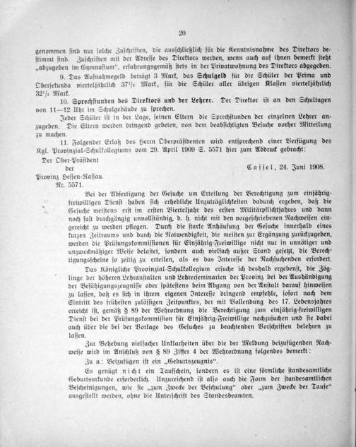11. Folgender Erlaß des Herrn Oberpräſidenten wird entſprechend einer Verfügung des Kgl. Provinzial⸗Schulkollegiums vom 29. April 1909 S. 5571 hier zum Abdruck gebracht: