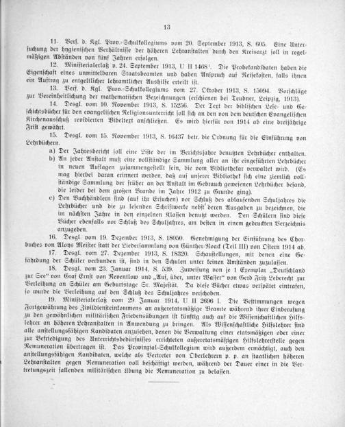 15. Desgl. vom 15. November 1913, S. 16437 betr. die Ordnung für die Einführung von Lehrbüchern.