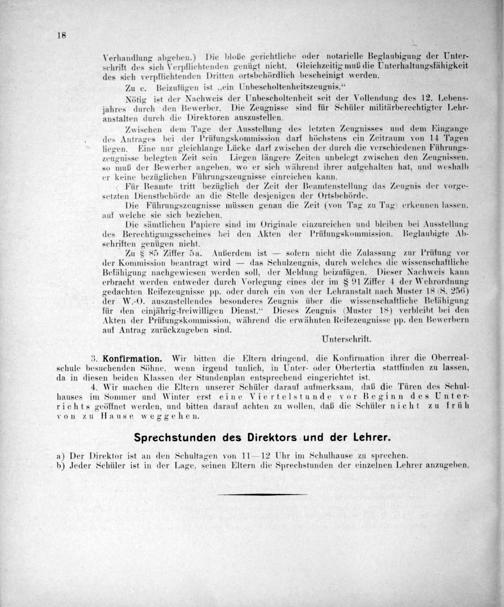 3. Konfirmation. Wir bitten die Eltern dringend. die Konfirmation ihrer die Oberreal- schule besuchenden Söhne, wenn irgend tunlich, in Unter- oder Obertertia stattfinden zu lassen, da in diesen beiden Klassen der Stundenplan entsprechend eingerichtet ist.
