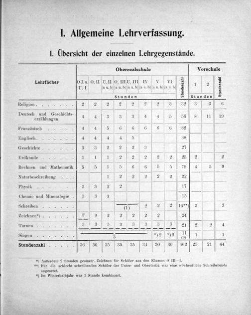 *) Aubßerdem 2 Stunden geometr. Zeichnen für Schüler aus den Klassen 0 III— I.