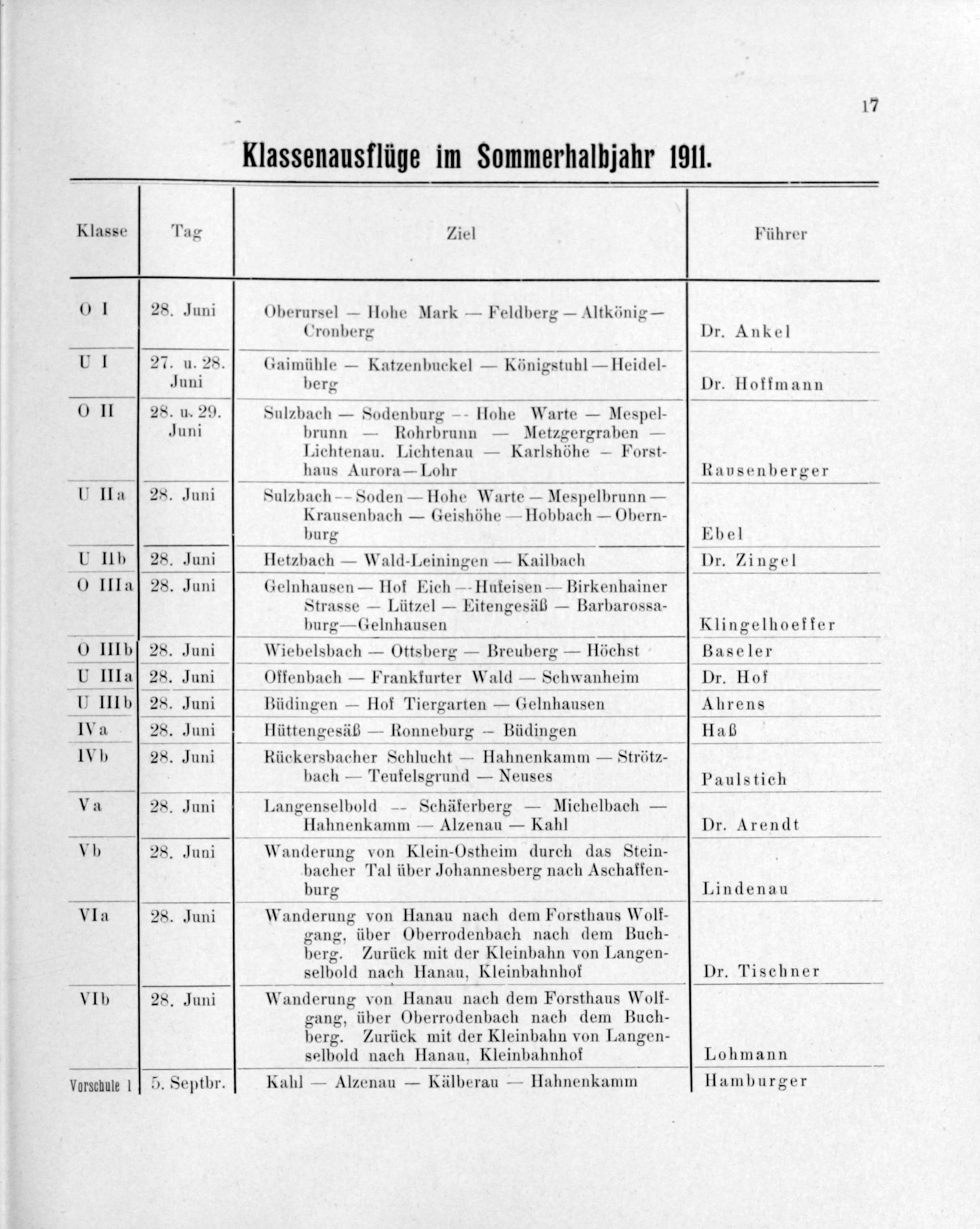 Klassenausflüge im Sommerhalbjahr 1911.
