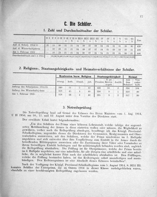 konnten Schüler der linterprima, die zu Ostern 1914 in dieser Klasse zurückgeblieben waren, ebenfalls zu einer beschleunigten Reifeprüfung zugelassen werden.