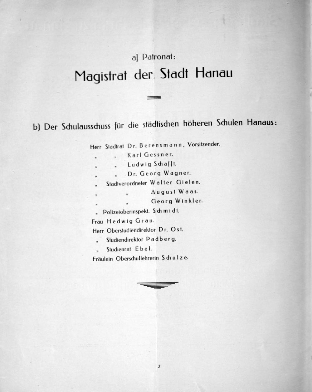 b) Der Schulausschuss für die tädtischen höheren Schulen Hianaus: