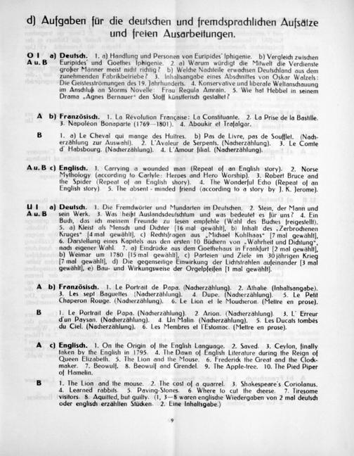 d) Aufgaben für die deutschen und fremdsprachlichen Aufselze