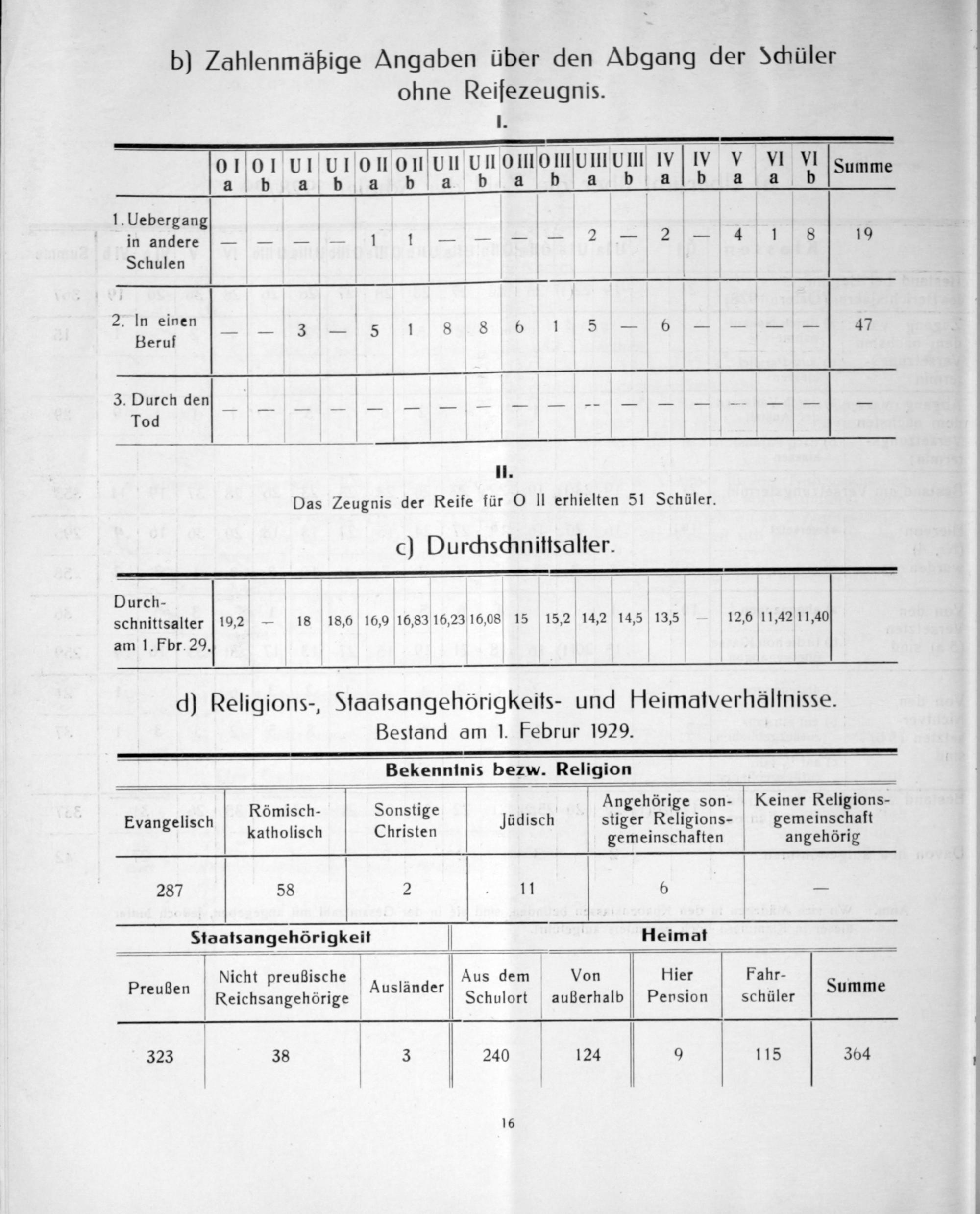 b) Zahlenmäßige Angaben über den Abgang der Schüler