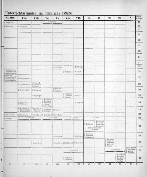 Unterrichtsstunden im Schuljahr 189798.