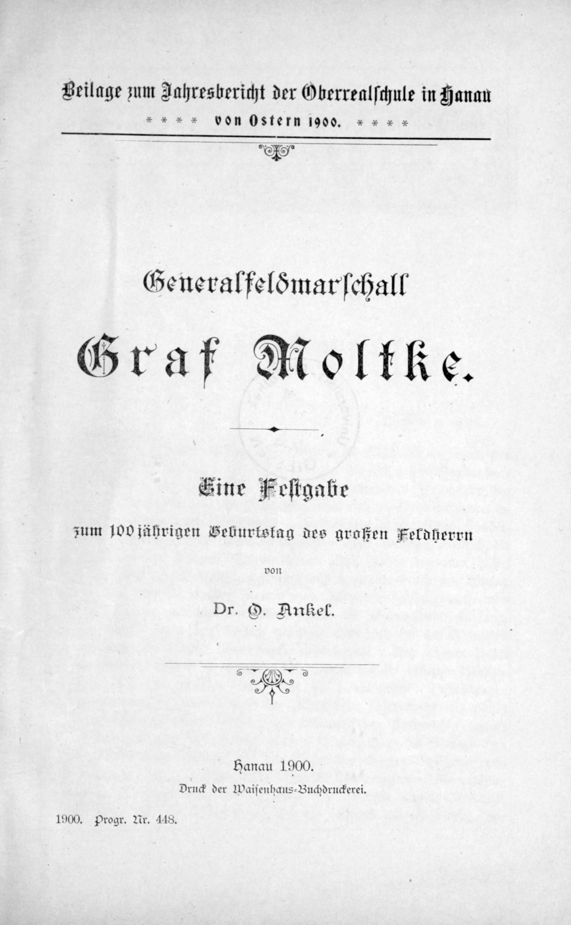 Gine Peſtgabe zum lod jährigen Beburtstag des großen Feldherrn von
