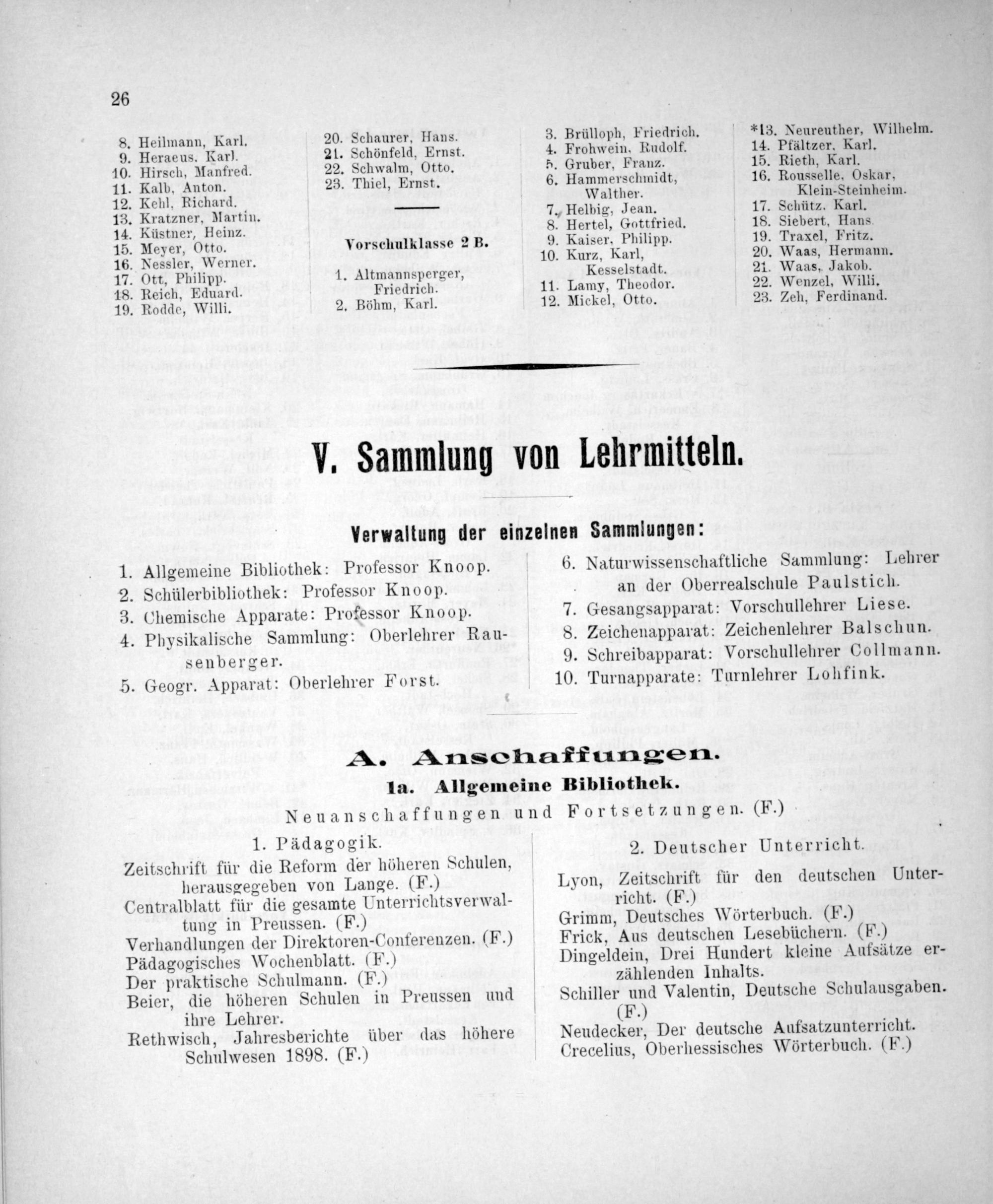 4. Physikalische Sammlung: Oberlehrer Rau- senberger.