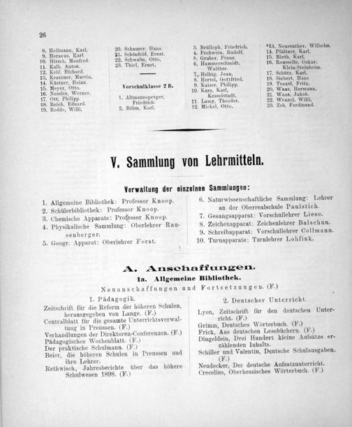 6. Naturwissenschaftliche Sammlung: Lehrer an der Oberrealschule Paulstich.