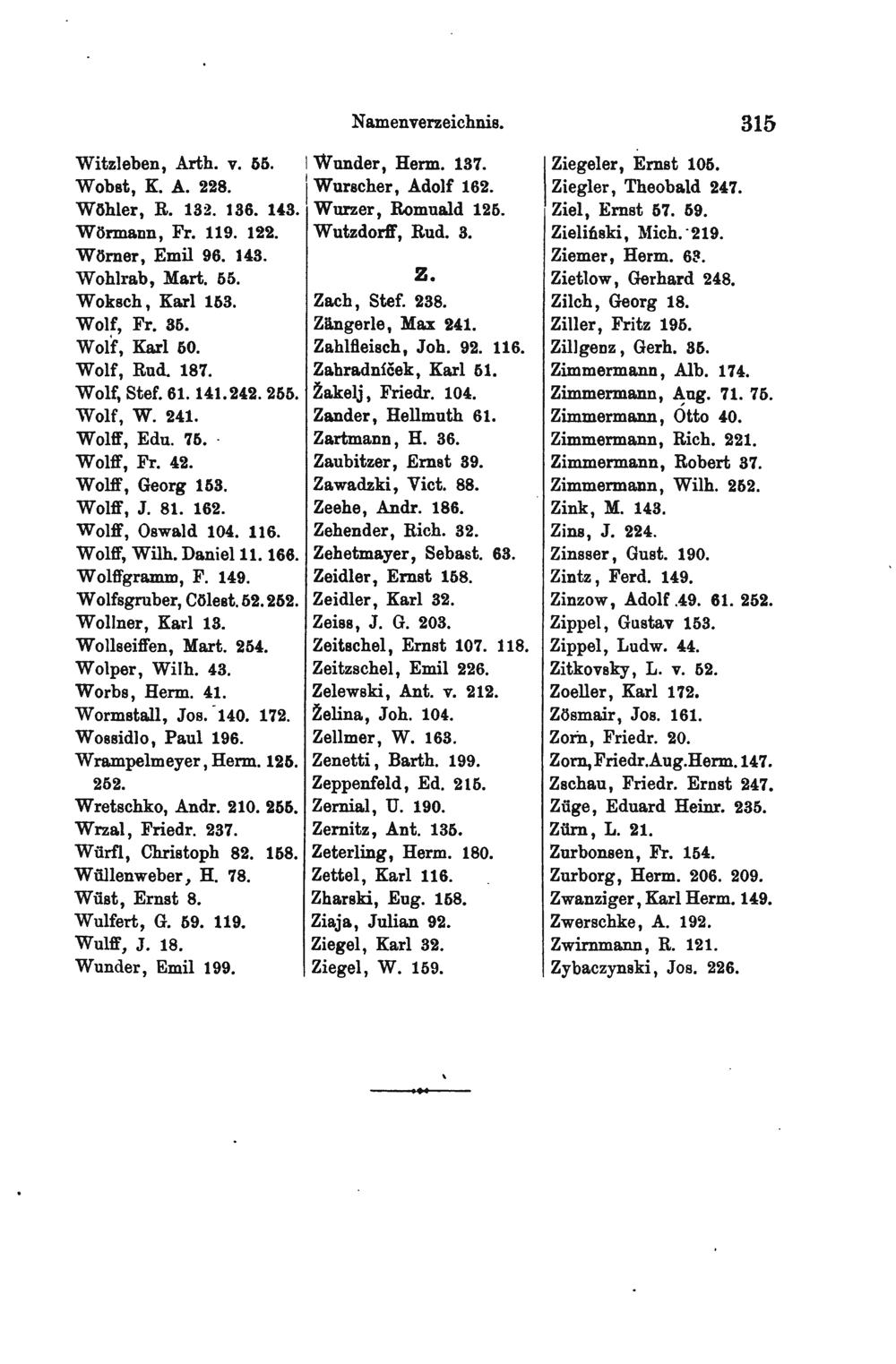 Zinzow, Adolf 49. 61. 252. Zippel, Gustav 153. Zippel, Ludw. 44. Zitkovsky, L. v. 52. Zoeller, Karl 172. Zösmair, Jos. 161.