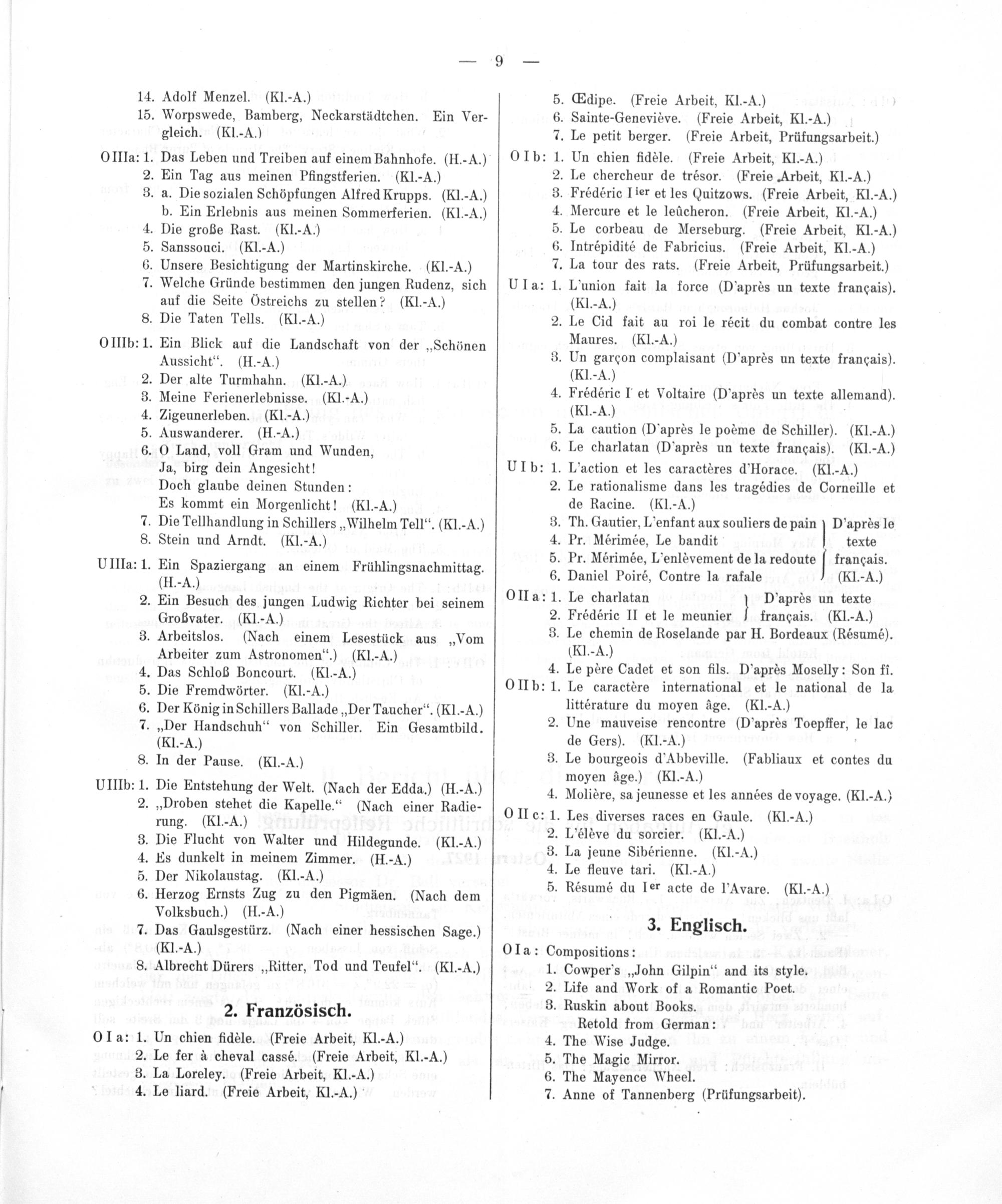.Das Leben und Treiben auf einem Bahnhofe.(H.-A.) . Ein Tag aus meinen Pfingstferien. . a. Die sozialen Schöpfungen Alfred Krupps.(Kl.-A.)