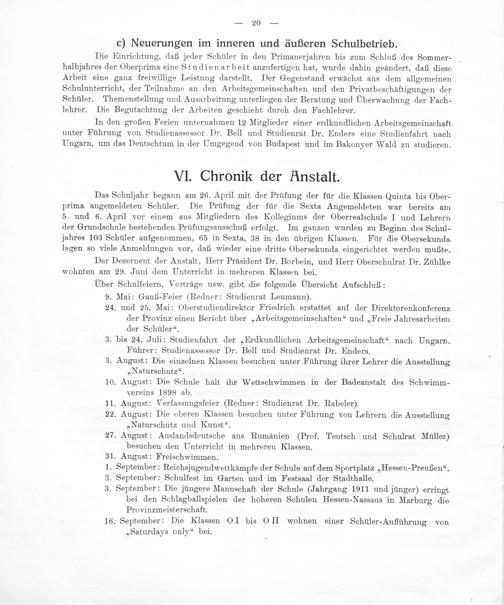 c) Neuerungen im inneren und äußeren Schulbetrieb.