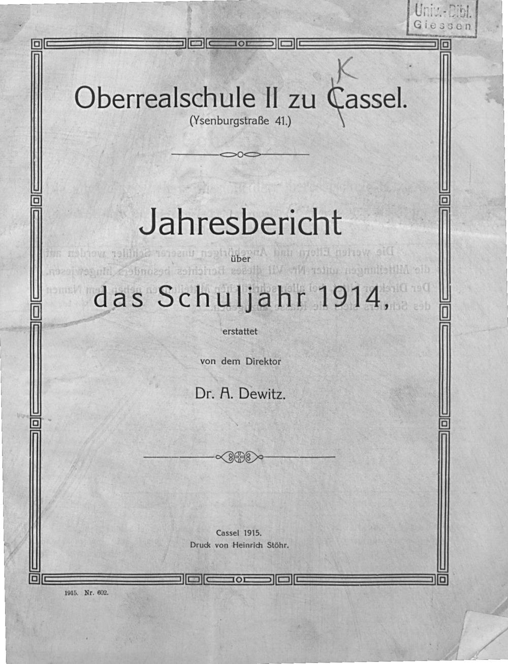 E D= Oberrealschule II zu Cassel (Vsenburgstraße 41.)