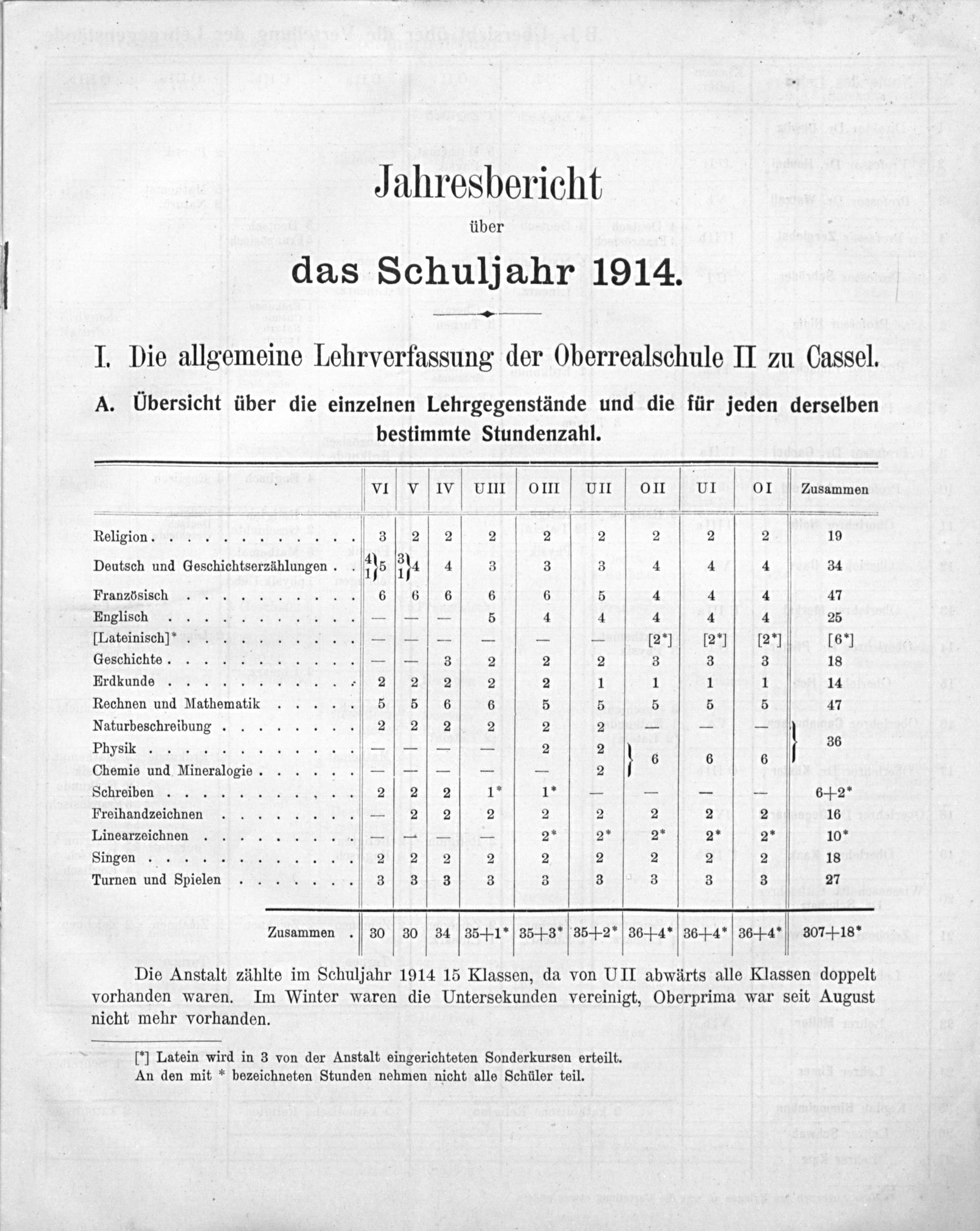 [*1 Latein wird in 3 von der Anstalt eingerichteten Sonderkursen erteilt. An den mit* bezeichneten Stunden nehmen nicht alle Schüler teil.