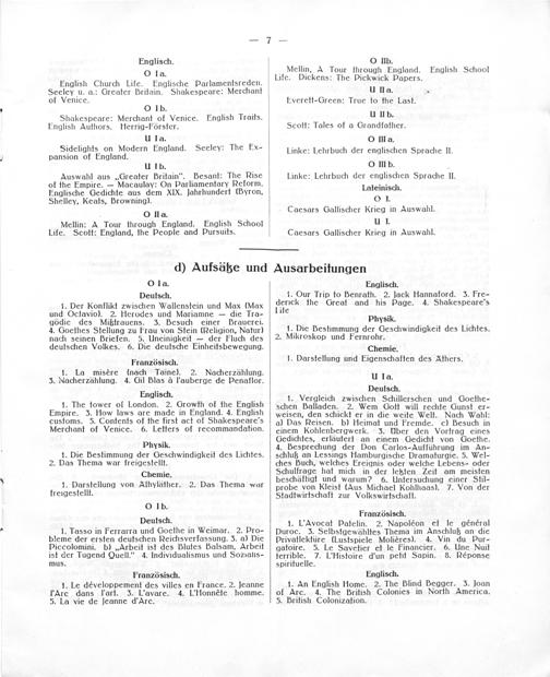 Life. Dickens: The Pickwick Papers. U Hla. Fvereft-Green: True to the Last. U IIb. Scott: Tales of a Crandfather. O III a. Linke: Lehrbuch der englischen Sprache II. O IIIb. Linke: Lehrbuch der englischen Sprache II. Lateinisch. O I. Caesars Gallischer Krieg in Auswahl. uU I.