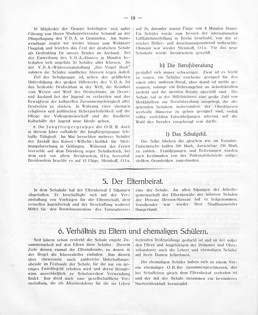eins der Schule. An allen Sizungen der Arbeits- gemeinschaft der Elternbeiräte der höheren Schulen der Provinz Hessen-Nassau hat er teilgenommen. Vorsitender war wieder Herr Stadtbaumeister.