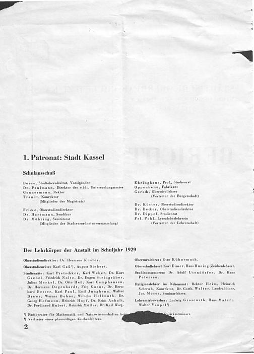 Oberstudiendirektor: Dr. Hermann Küster. Oberstudienräte: Karl Gaß ¹), August Siebert.