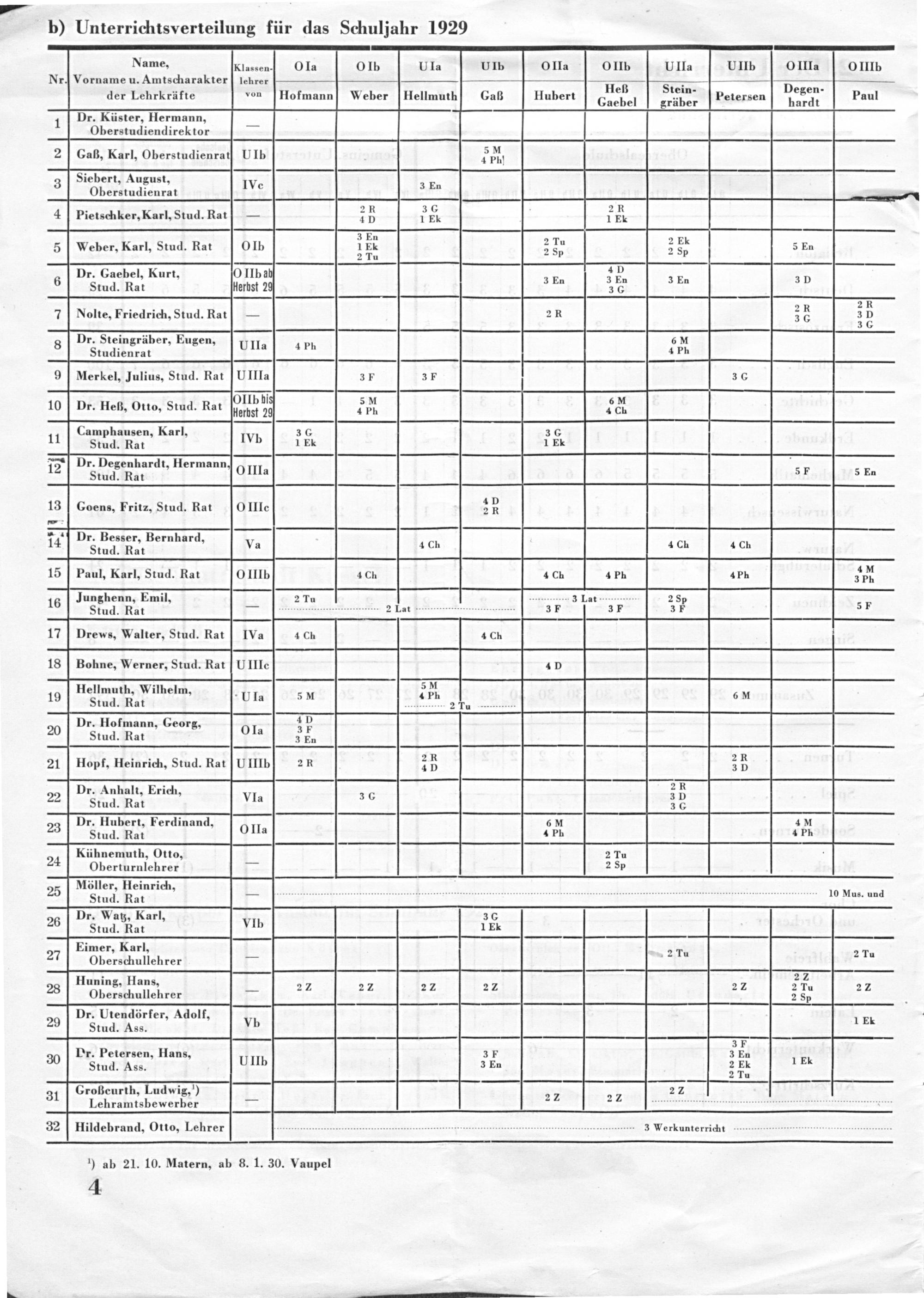 — b) Unterrichtsverteilung für das Schuljahr 1929