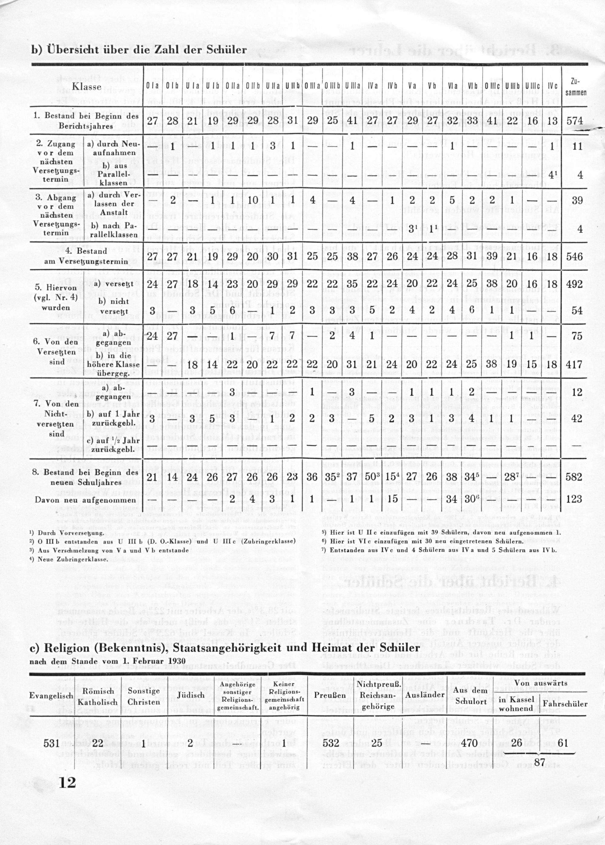 b) Ubersicht über die Zahl der Schüler