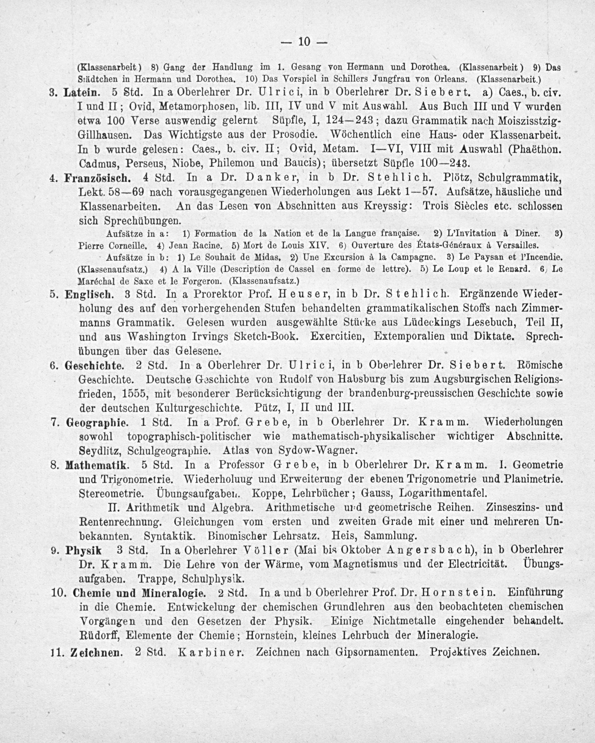 (Klassenarbeit) 8) Gang der Handlung im 1. Gesang von Hermann und Dorothea.(Klassenarbeit) 9) Das Sädtchen in Hermann und Dorothea. 10) Das Vorspiel in Schillers Jungfrau von Orleans.(Klassenarbeit.)