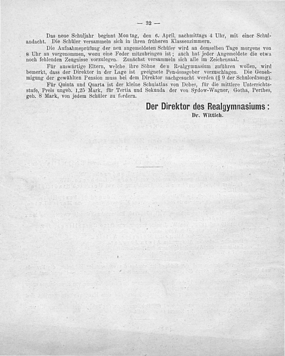 Der Direktor des Realgymnasiums: Dr. Wittich.