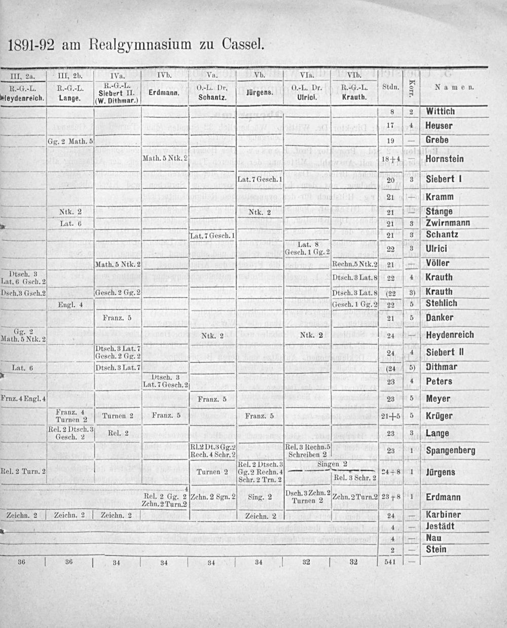 III, 2a. III, 2. 1Va. IYb. va. Vb VIA VIb. 4 -G. R.-G.- R.-G. L. 04-L. Dr 1. Dr. R.-G. L. Stdn. 3 Namen. 8 M d T. K.G. Sjebert I. Erdmann. 8— 1 lürgens. 9e 3 4 1 A 5 Meydenreich. Lange.(W. Dithmar.) Scohantz. rici. rauth. 8 2 VWittich 17 4 Heuser G. 2 Math. 5 19—(rebe Math. 5 Ntk. 2 18+4— Hornstein Lat. 7 Gesch. 1 20 3 Siebert 1 21— Kramm ———ν Ntk. 2 21— Stange Lat. 6 21 3 Zwirnmann 8 Lat. 7Gesch.1 21 3 Schantz Tat. 8 Gesch.1 Gg. 2 22 3 Urrici * Math. 5 Ntk. 2 Rechn.5 Ntk.? 2= Völler Dtsch. 3— Lat. 6 Gsch. 2 Dtsch. 3Lat. 8 22 4 Krauth Dsch. 3 Gsch. 2 Gesch. 2 Gg. 2 Dtsch. 3 Lat. 8(22 3) Krauth Engl. 4 Gesch. 1 Gg. 2 22 5 Stehlich Franz. 5 21 5 Danker Gg. 2— 4 Nath. 3 Ntk.2 Ntk. 2 Ntk. 2 24— Heydenreich Dtsch. 3 Lat. 7 desch. 2 Gg. 2 24 Siebert II lIat. 6 Dtsch. 3 Lat. 7(24 5) Dithmar * 1“““ Dtsch. 3 3 — Lat. 7Gesch. 2 23 4 Peters. Frnz. 4 Engl. 4 V Franz. 5 238 5 MNMceyer Pra, 44, V Turnen 2 Franz. 5 Franz. 5 21+5 5 Krüger Rel. 2 Dtsch. 3 Gesch. 2 Rel. 2 V 2³ 3 Lange Rl. 2 Dt. 3 Gg. 2 Rel. 3 Rechn. 5 Rech-4 Schr.2 Sehreiben 2 23 1 Spangenberg Rel 2 1 Rel. 2 Dtsch. 3 Singen 2 el. 2 Turn. 2 Turnen 2 Gg. 2 Rechn. 4——— 248 1 ürgens Schr. 2 Trn. 2 Rel. 3 Schr. 2 9 ............................................. 4 4 Dsch. 3 Zchn. 2 Rel. 2 Gg. 2 Zchn. 2 Sgn. 2 Sing. 2 Zchn. 2 Turn. 21 23 † ‚S 1 Erdmann . Zchn. 2 Turn. 2 5 Turnen 2 Zeichn. 2 Zeichn. 2 Zeichn. 2 Zeichn. 2 24— Karbiner 4 4— lestädt 4— Nau 2—'Stein 36 36 34 34 34 34 32 32 541—