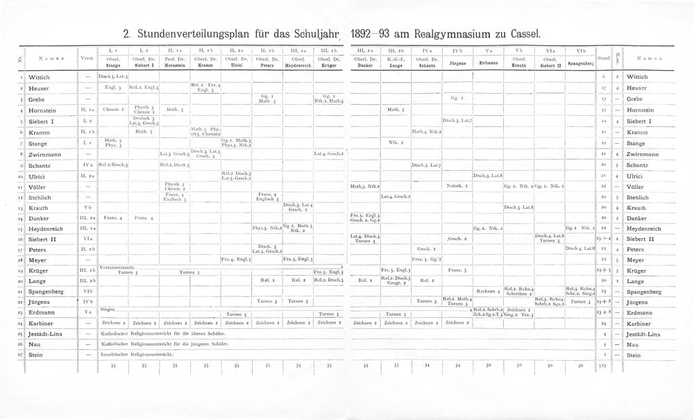 2. Stundenverteilungsplan für das Schuljahr 1892—93 am Realgymnasium zu(assel.