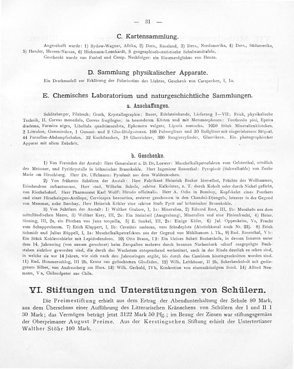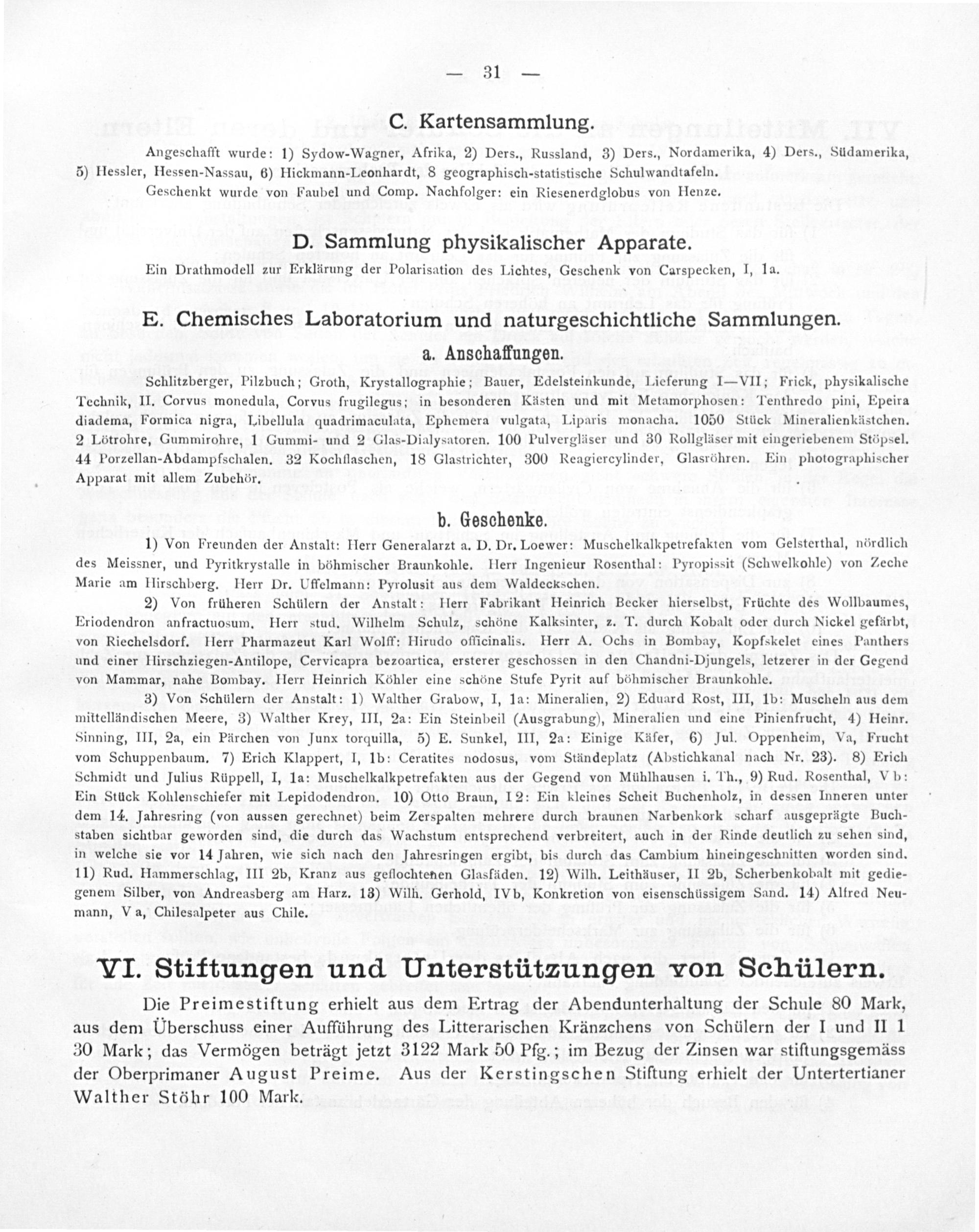 VI. Stiftungen und Unterstützungen von Schülern.