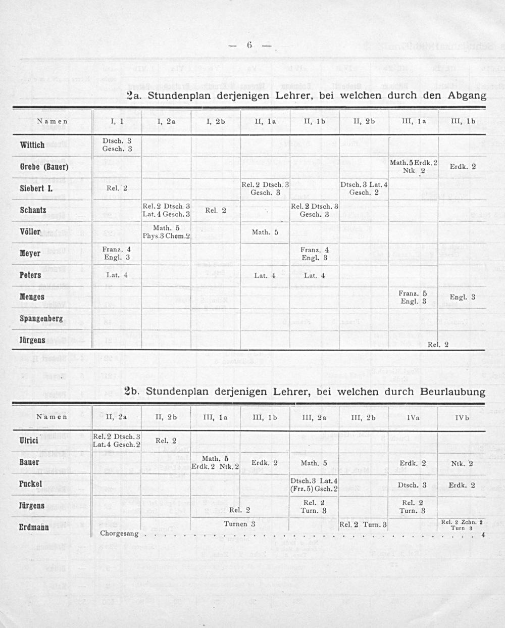 2a. Stundenplan derjenigen Lehrer, bei welchen