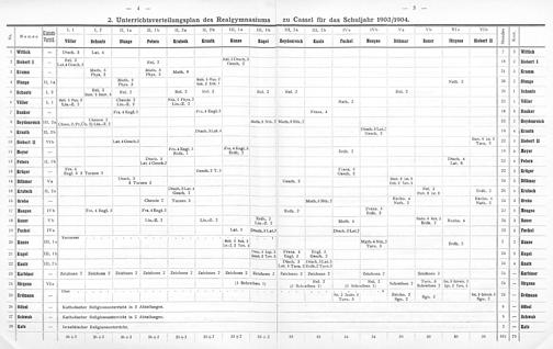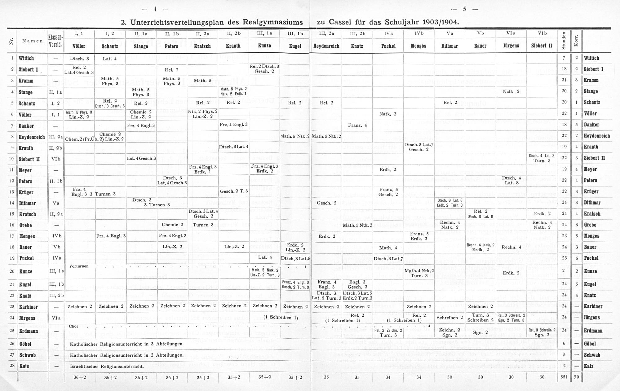 ———— Klassen I, 1 1, 2 II, l a II, 1 b II. 2 a II, 2 b III, l a III, 1 b III, 2 a III, 2 b IVa IVb V Va Vb VIa VIb 5. Namen 3 f 8 1— 85 2 8. 1 8 Q Vorstl. völler Schantz stange Peters kratsch Krauth Kunze Rugel Heydenreich Knatz Puckel Henges Dithmar Bauer jürgens Siebert l 5 2 2 1 Wittich—- Dtsch. 3 Lat. 4 V 7[2 Wittich 3 Rel. 2 Rel. 2 Dtsch.3—-.“— ün 2 Siebartl.— ſtLatl Gesh.3 V Rel. 2 Gesch. 2 V V V V 1s 2 siebert 1 . MMath.535 AMMath. S Matp. S. 1 ͤ„ 3—.. 3 Kramm Phys. 3 Phys. 3 Math, 3 21 3 Kramm — Math. 5 Math. 5 phys. 2 1 b, 1„ Tanee ſui, la Phys. 3 re 5— V V ue ee Rel. 2 2— 2 R 1 k„— 1, 9 8 8 Schantz 1, 2 Dch. 3 Gesch. Z Rel. 2 3 e2 6 2 1 2 Rel. 2 V Rel. 2 V V 20 1 Schanle 5 Math. 5 Phys. 3 Chemie 2 Ntk. 2 Phys. 2“. 4 Völler 1, 1 Lin.-Z. 2 Lin.-Z. 2— Lin.-Z. 2—— ſ Natieu 22 4 Fäller 7 Danker— Frz. 4 Engl. 3 Fra. 4 Engl. 3 Fran. 4 V 18 5 LDanker —.——— Q·—B·—--———————————— Chemie 2 V. 8 Heydenreich III, 22hem. 2(Pr. Ob. 2) Lin.-2. 2— Math. 5 Ntk. 2 Math. 5 Ntk. 2 V 22 2 Heydenreich 3 ö Dtsch. 3 Lat. 0 u r. h. 3 Lat. 4 " rautn II, 2 b DtscheSbat. e 3 Gesch. 2 V 19 4 Irauth 10 V siebert M VIb Lat. 4 Gesch.3 Dwenn 1, 8 22 3 Siebert I ————. 8ſſſſ Frz. 4 E 1. 3 Frz. 4 En 1. 3*—“— 8 9 1 V Ueyer— Ta Edg Frdk. 5 Erdk. 2 V V 19 4 Neyer „ 3 Dtsch. 3— ö,,“.· 5 5 Dtsch. 4„„. 12 Peters II, 1 b Lat. 4 Gesch. 3 Lat. 8 22 4 Peters 1 Frz. 4 ve**— 13 Krüger— Engl. 3 3 Turnen 3 3 Gesch. 2 1,3— Gesch. 2 22 3 Krüger Dtsch. 3 5—————— te 5 ſa——— 14 Dithmar Va 3 Turnen 3 1226 Gesch. 2 Sede lee 24 3 Dithmar Dtsch. 3Lat.—4 5— 5 Rel.2“ 15 Kratsch II, 2a Gesch. 2ä 82 3 Dch. 8 Lit. 3 Erdk. 2 24 4 Kratsch 16— 10 2 RFechn. 4 Rechn. 4 Grebe Chemie Lurnen 3 2 1 Math. 5 Ntk. 2 Natk. 2 Natk. 2 24 3(grobe 17(Henges IVb Frz. 4 Engl. 3 Frz. 4 Engl. 3 Erdk. 2 rafies 2— 23 s8 Nongos 18 Bauer Vb Lin.-Z. 2 Lin.-Z. 2 1d., Math. 4 darn. 4. ha. 2 Rechn. 4 24 3 Bauer 19 Puckel IVa Lat. 5 Dtsch. 3 Lat. 5 Dtsch. 3 Lat.7 23 ⁰ 5 Puckel Vorturnen.. 1——— 20 Kunze III, 1 a Math. 5 Natk. 2 Math. 4 Ntk. 2 2 1 Lin.-Z. 2 Turn. 3 Turn. 3 Prdk. 2 2)LiI: Franz. 4 Engl. 3 Franz. 4 Engl. 3——— III, 1 b gl. g 12¹ Lugel 1 Gesch. 2 fum. 8 Engl. 3 Gesch. 2 24 5 Kugel Dtsch. 3 Dtsch. 3 Lat. 5 3 5[S III, 2 b.. 22 Knatz II, 4 4 1 Lat. 5 Turn. 3 Erdk. 2 Turn. 3— 124— 14. Lusu— 23 Karbiner— LZeichnen 2 Zeichnen 2 Zeichnen 2 Zeichnen 2 Zeichnen 2 Zeichnen 2 Zeichnen 2 Zeichnen 2 Zeichnen 2 LZeichnen 2 Zeichnen 2 Zeichnen 2 24— Karbiner 24 1 8 2 Rel. 2— Rel. 2. Turn. 3 Rel. 3 Schreib.-2— 2 lürgons 712 C Sehreiben ¹)(1 Schreiben 1)(1 Schreiben 1) Schreiben 2 Schreiben 2 Sgn. 2 Turn. 3 24 lürgens Chor.. 4—“— 25 Erdmann— Rel. 2 Zeichn. 2 Zeichn. 2 San. 7 Rel. 3 Schreib. 2 24— Erdmann Turn. 3 Sgn. 2 Sn. Sgn. 2 26 Göbel— Katholischer Religionsunterricht in 3 Abteilungen. 6— cdöbel 27[Schwab— Katholischer Religionsunterricht in 2 Abteilungen. 5— schwab 28 Katz— lsraelitischer Religionsunterricht. 2— Katz —— 7* ſ p' 36 42 3642 36 42 36 †2 V 35+ 2 35+4 2 V 35 4 2 3342 38 35 343 3, o oß e 551 70