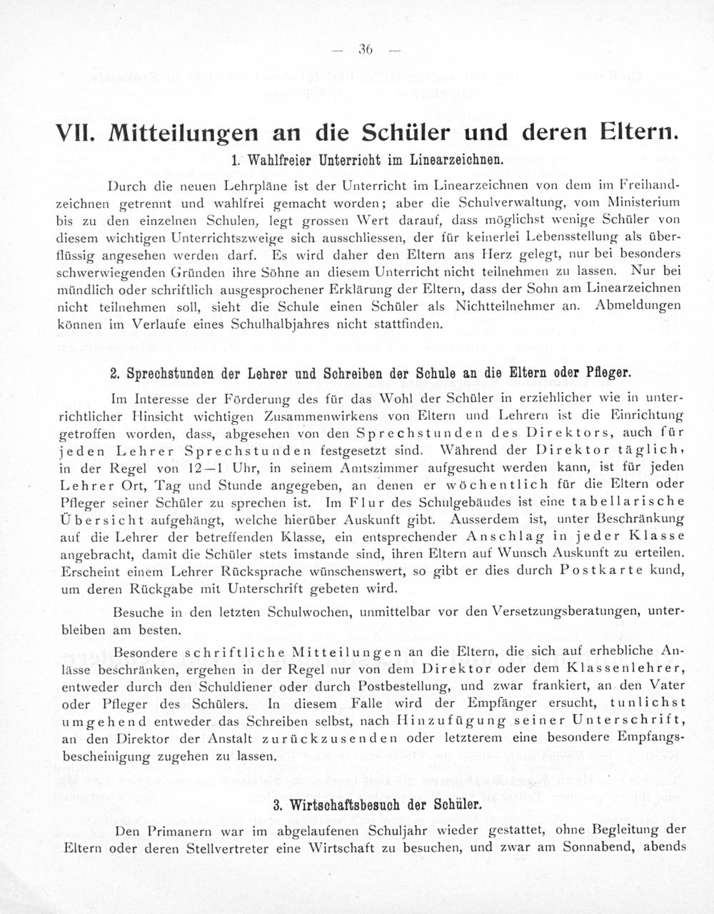 VII. Mitteilungen an die Schüler und deren Eltern. 1. Wahlfreier Unterricht im Linearzeichnen.