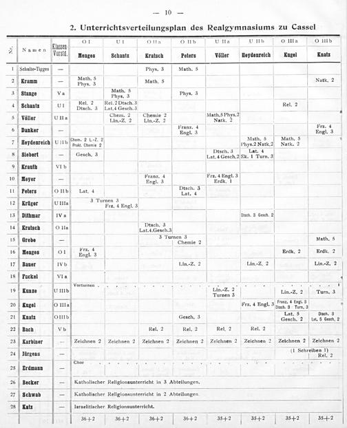 2. Unterrichtsverteilungsplan des Realgymnasiums zu Cassel