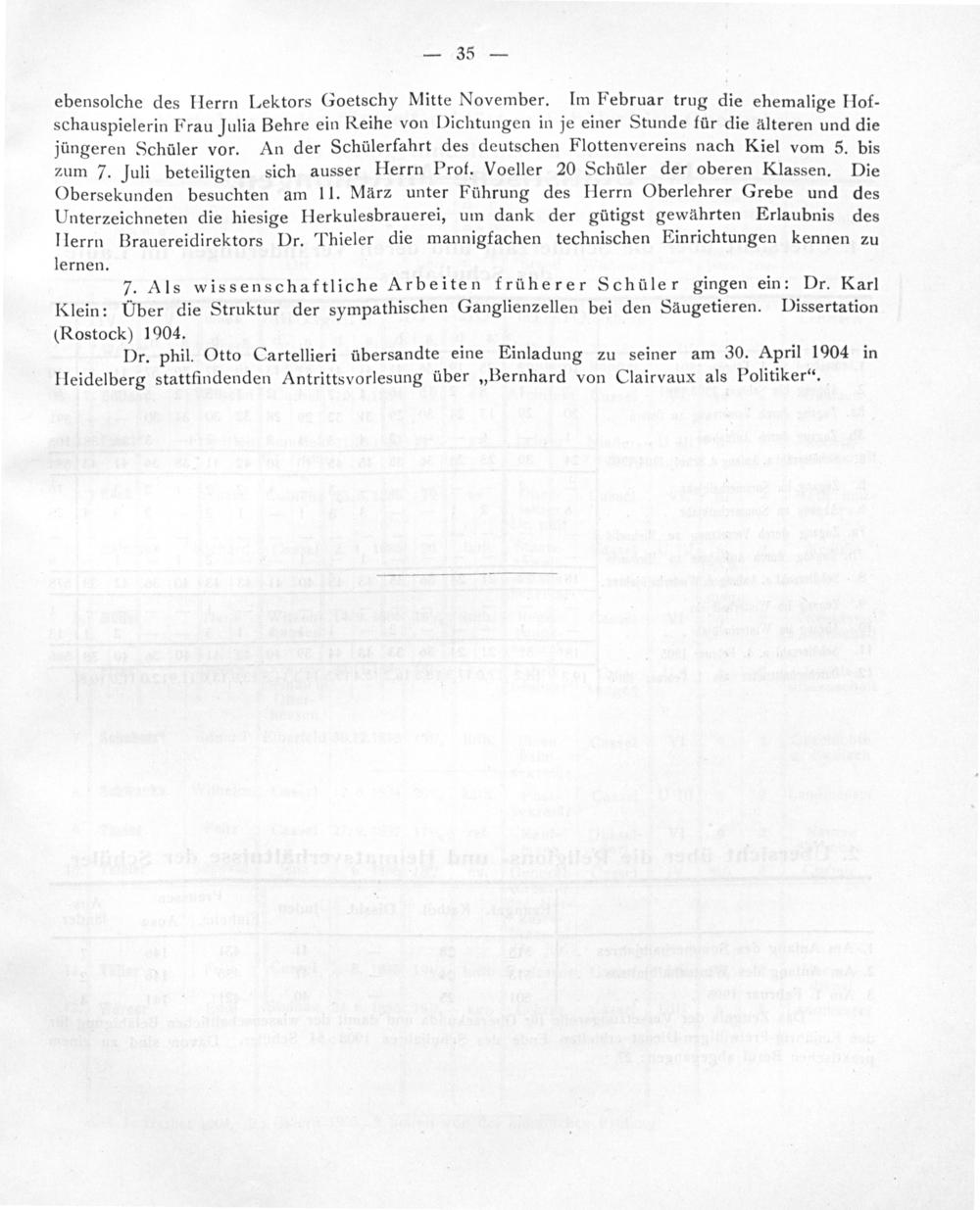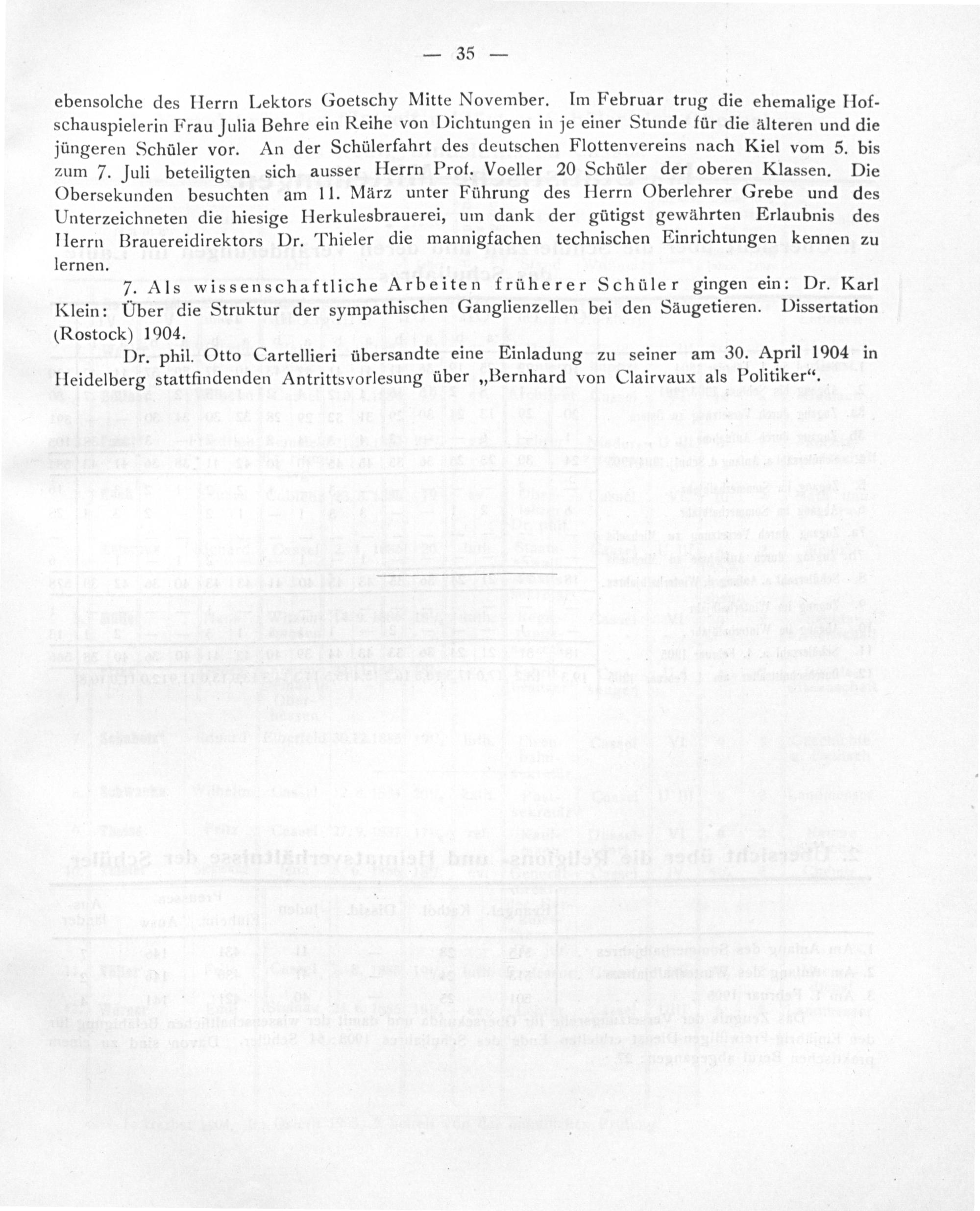 7. Als wissenschaftliche Arbeiten früherer Schüler gingen ein: Dr. Karl Klein: Uber die Struktur der sympathischen Ganglienzellen bei den Säugetieren. Dissertation (Rostock) 1904.