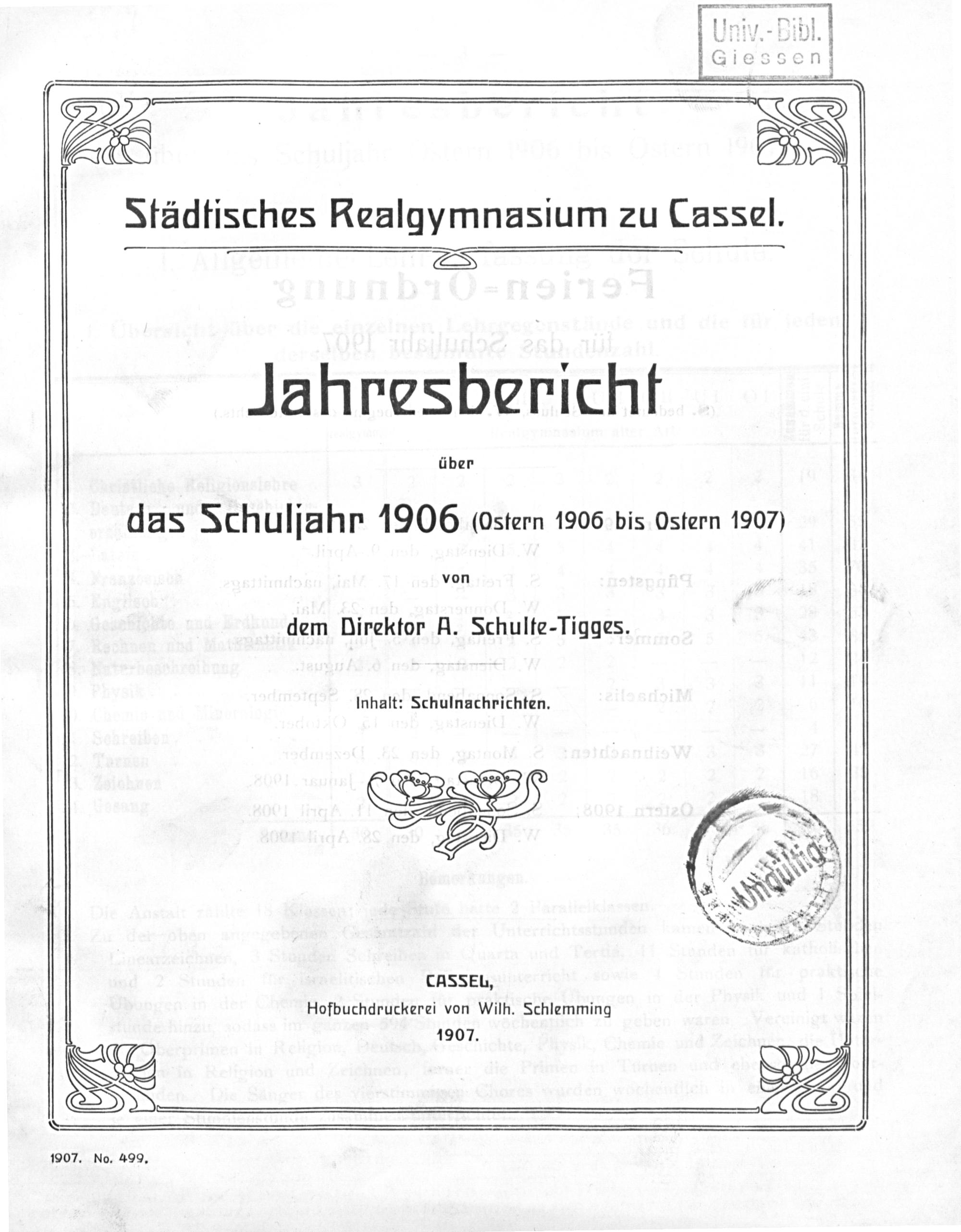 das Schuljahr 1906(Ostern 1906 bis Ostern 1907)