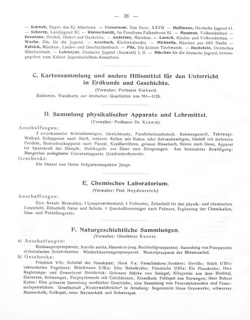 F. Naturgeschichtliche Sammlungen. (Verwalter: Oberlehrer Kunze). a) Anschaffungen:
