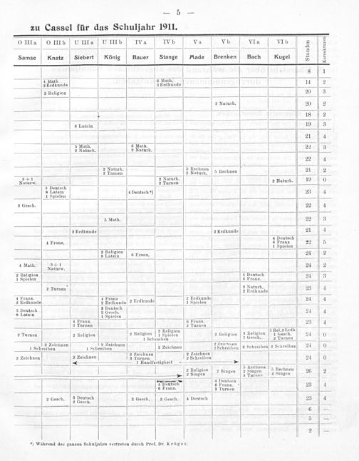 zu Cassel für das Schuliahr 1911. 0 TIIa O IIIb U IIIa U IIIb IV a IV b Va V b VIa VI b 5 3 —₰— 5[4 Samse Knatz Siebert König Bauer Stange Nade Brenken Bach Kugel 5 5 2 8 1 4 Math 6 Math. 2 Erdkunde 3 Erdkunde 14 2 2 Religion 20 3 2 Naturk. 20 2 18 2 8 Latein 19 3 21 4 5 Math. 6 Math. 2 2 Naturk. 2 Naturk. 2² 3 22 4 2 Naturk. 5 Rechnen’ 2 Turnen 2 Naturk. 5 Rechnen 21 3 3+ 1 2 Naturk.. Naturw. 2 Turnen 2 Naturk. 19 0 3 Deutsch s Latein 4 Deutsch*) 23 4 1 Spielen 2 Gesch. 22 4 5 Math. 22 3 2 Erdkunde 2 Erdkunde 21 4 4 Deutsch 4 Franz. 6 Franz. 22 5 1 Spielen Te eree 22 4 Math. 3+ 1 24 2 Naturw. 2 Religion 4 Deutsch 4 1 Spielen 6 Franz. 24 3 4 2 Naturk. 3 2 Turnen 2 Erdkunde 23 4 4 Franz. 4 Franz 2 Erdkundeſ 3 4 2 Erdkunde 2 Erdkunde 2² Erdkunde 1 Spielen 24 1 4 s peutzen ² Bente 21 4 8 Latein 1 Spielen———— 4 Franz. 6 Franz. 23 4 3 Turnen 2 Turnen— 2 Religion— z Rel. 2 Erdk 2 Turnen 2 Religion 2 Religion 1 Fentan 2 Religion 3 Religion 1 Gesch. 24 0 1 Schreiben 1 Gesch. 2 Turnen— 75 2 2 7 2eichnen.— 1 Schkalwnichnen 1 Schrnichnen 2 Zeichnen ² Schreiben 2 Schreiben 2 Schreiben 21 10. . 2 Zeichnen 2 Zeichnen 2 Zeichnen 2 Zeichnen 3 Turnen 2 Schreiben 24 0 1 Handfertigkeit 5 Rechnen 2 Religion 2 Si 2 Si 5 Rechnen — 2² Singen Buben 2 Pne 2 Singen 26 2 Ppratden 4 Deutsch 4 Deutsch 6 Franz.* 23 4 6 Franz. 3 Turnen 2 Gesch. 3 Deutsch 3 Gesch. 3 Gesch. 4 Deutsch 23 4 2 Gesch. 6— —— 5 8 2—