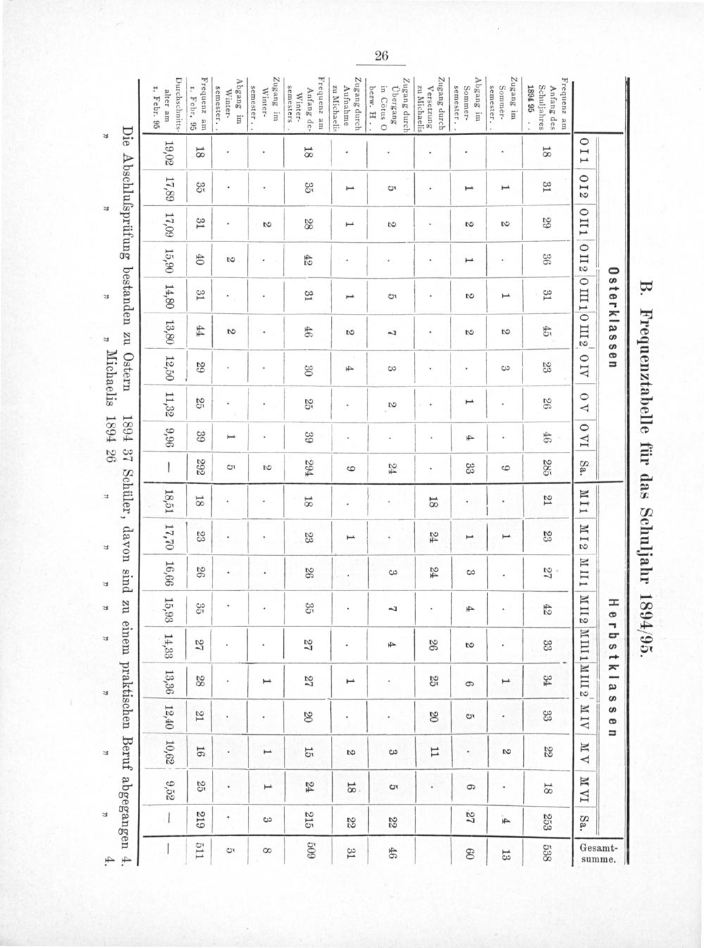 B. Frequenztabelle für das Schuljahr 1894/95.
