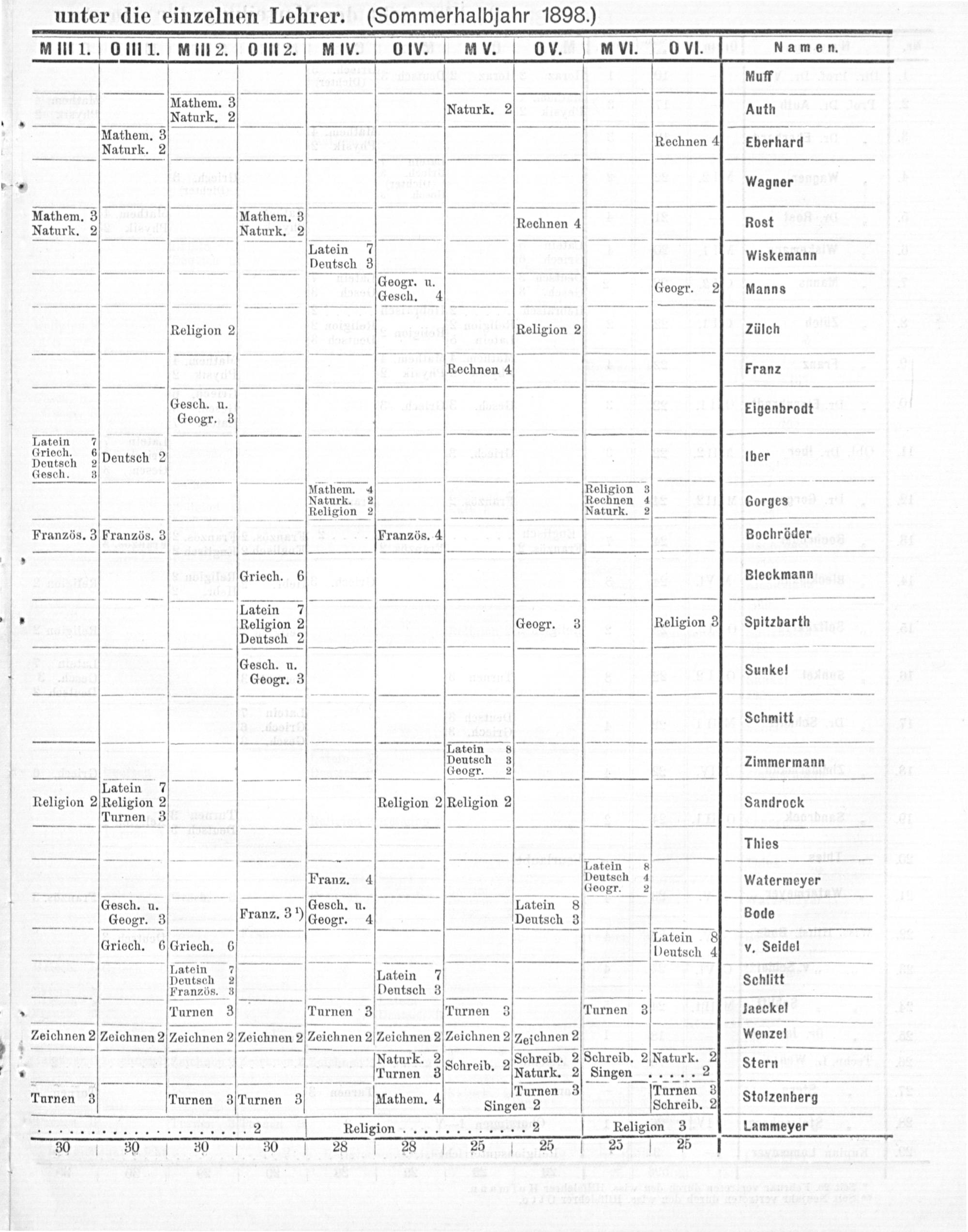 unter die einzelnen Lehrer.(Sommerhalbjahr 1898.)