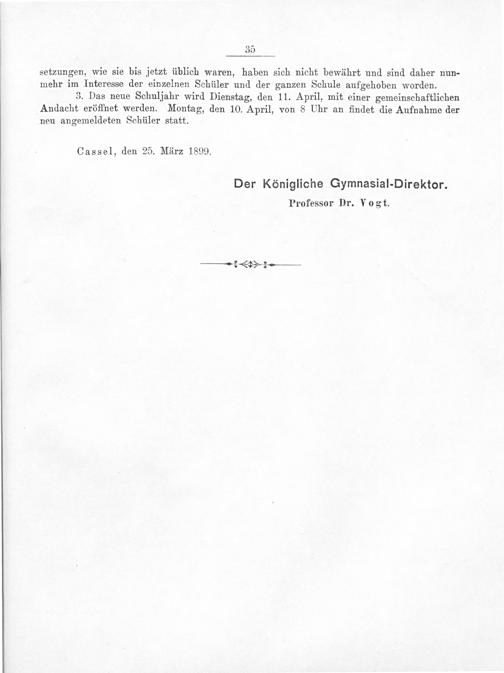setzungen, wie sie bis jetzt üblich waren, haben sich nicht bewährt und sind daher nun- mehr im Interesse der einzelnen Schüler und der ganzen Schule aufgehoben worden. 3. Das neue Schuljahr wird Dienstag, den 11. April, mit einer gemeinschaftlichen