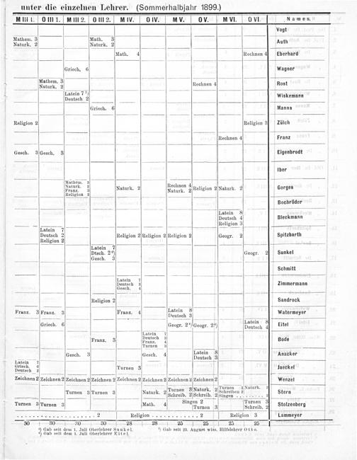 MI III 1. O IIl 1. ul 2. 01Il 2.] HMIV. OlIV. MV. OV. ZVWI. oVI. Namen. Vogt Mathem. 3 Math. 3 Naturk. 2 Naturk. 22 Auth 1 Math. 4 Rechnen 4 Eberhard Griech. 6 Wagner Macem. 2 Rechnen 4 Rost Latein 77) Deutsch 2 Wiskemann Griech. 6 Manns Religion 2 Religion 3 Zülch Rechnen 4 Franz Gesch. 3 Gesch. 3 Eigenbrodt liber 3 Aathem. 4 Nechenen 4— Naturk. 2. Datun 3 Naturk. 2 Naturk. 2 Religion 2 Naturk. 2 Gorges Religion 2——— Bochröder — 3 ſſalein 8 iIII Deutsch 4 Bleckmann —... Religion 3 Latein 7+ Deutsch 2 Religion 2 Religion 2 Religion 2 Geogr. 2 Spitzbarth Religion 2— Latein 7 Dtsch. 2 ³) Geogr. 2 Sunkel ————— Gesch. 3———————-——ÿ—ÿ—;—:——:—;—:—x—:;;—— Schmitt 2 Latein 7. Deutsch 3 Zimmermann Gesch. 4 Religion 2 Sandrock Fran. A Latein 8 5 P Tan2 1 3 Frane 3 8— 4 hentsch 3 1 Watermeyer Griech. 6 Geogr. 2)Geogr. 2) Latein, eiten ——————— Fatein 7—;ͤ—;——— Franz. 3 Donteoh 4 Bode —————— Turnen 3.———— ¹ 3 Latei 8 —— Gesch. 3 Gesch. 4 Deutsch 3 Anabker Latein—— 3———— jIweutschs Hrnenn 2 Turnen 3 laeckel Zeichnen 2 Zeichnen 2 Zeichnen 2 Zeichnen 2 Zeichnen 2 Zeichnen 2 Zeichnen 2 Zeichnen 2 Wenzel Turnen 3 Naturk. 2 Turnen 3 Naturk. 2 — Turnen z lurnen 4 Faturk. 2 Schreib. 2 Schreib. 2Sohreiben 2.. 2 Ste Turnen 3 Turnen 3 Math. 4 Wefinaan 1 Tifen 3 Stolzenberg .................... 2 Religion)n 2 Religion 3 l(ammeyer 30 30 0 30 28 28 25 25 25. 25—4