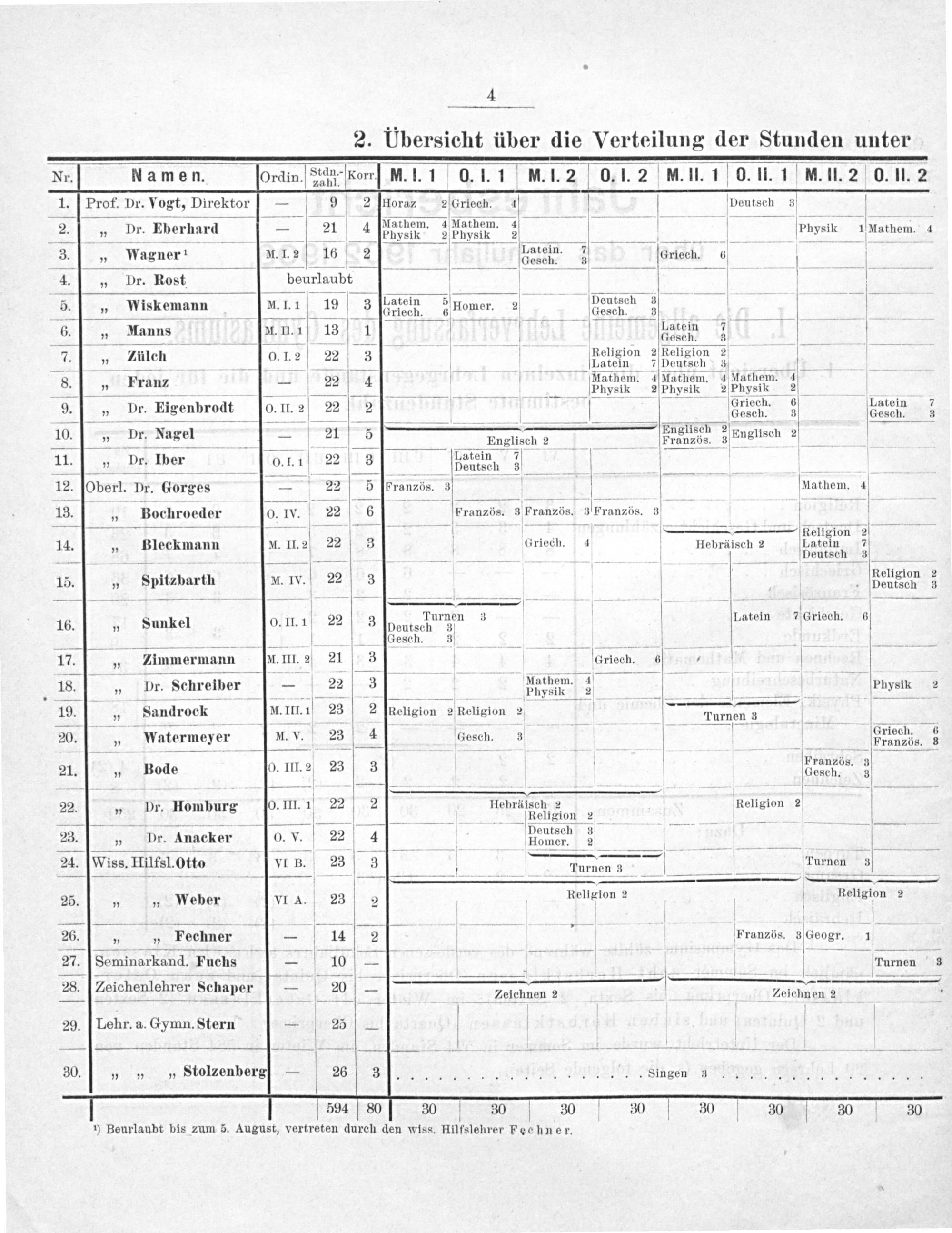 1 Prof. Dr.— Direktor— 9 2 Moraz 2Griech. 4 Deutsch 3 59 1— edlr MIathem. 4 Mathem. 4—