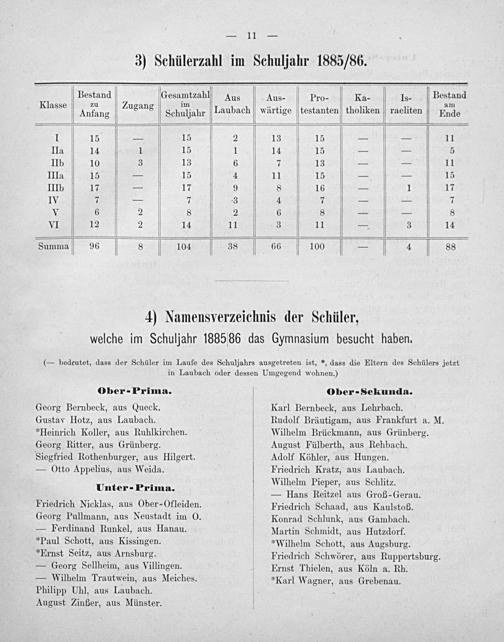 3) Schülerzahl im Schuljahr 1885/86.
