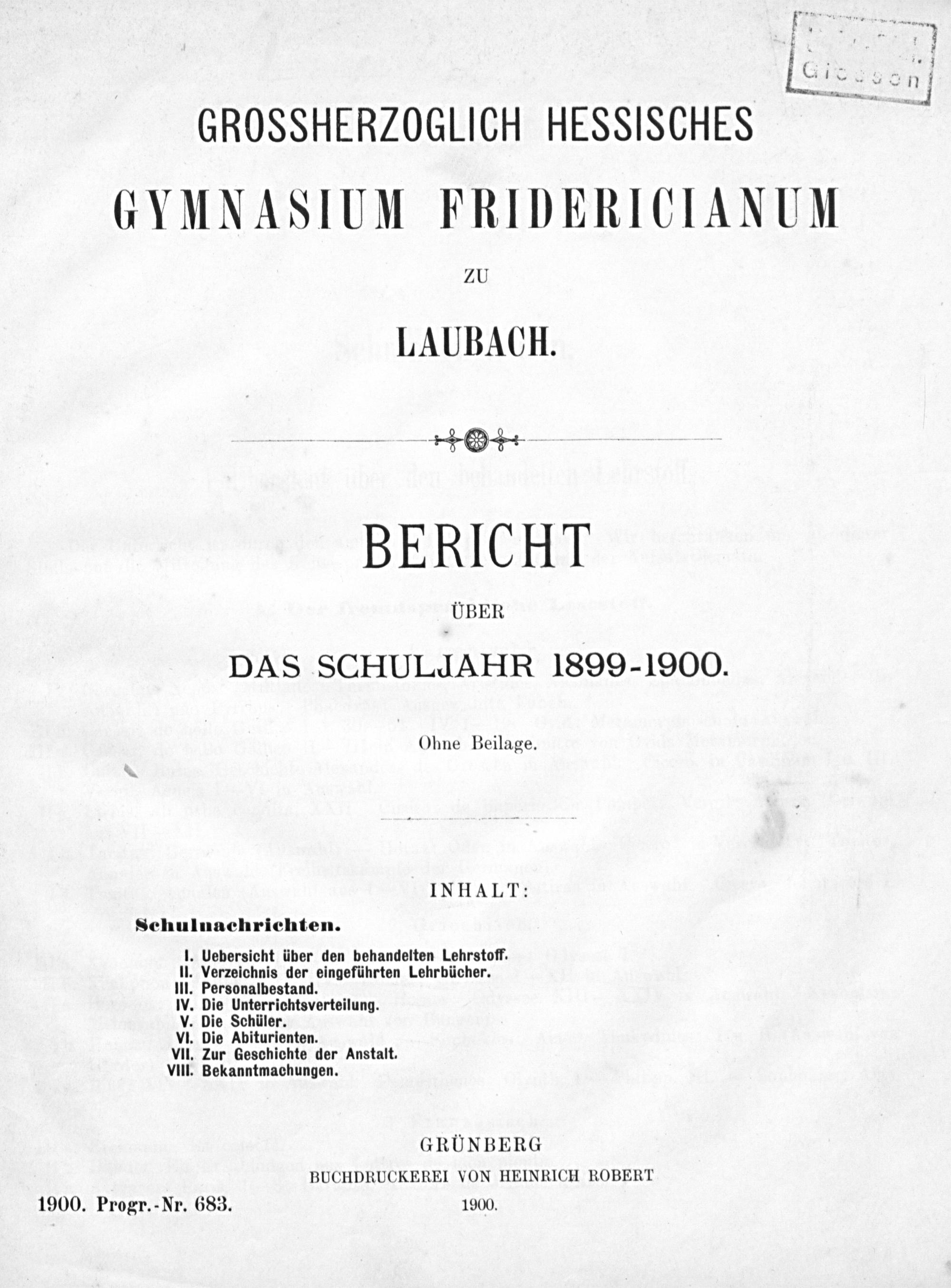 GRUNBERG BUCHDRUCKEREI VON HEINRICH ROBERT 1900. Progr.-Nr. 683. 1900.