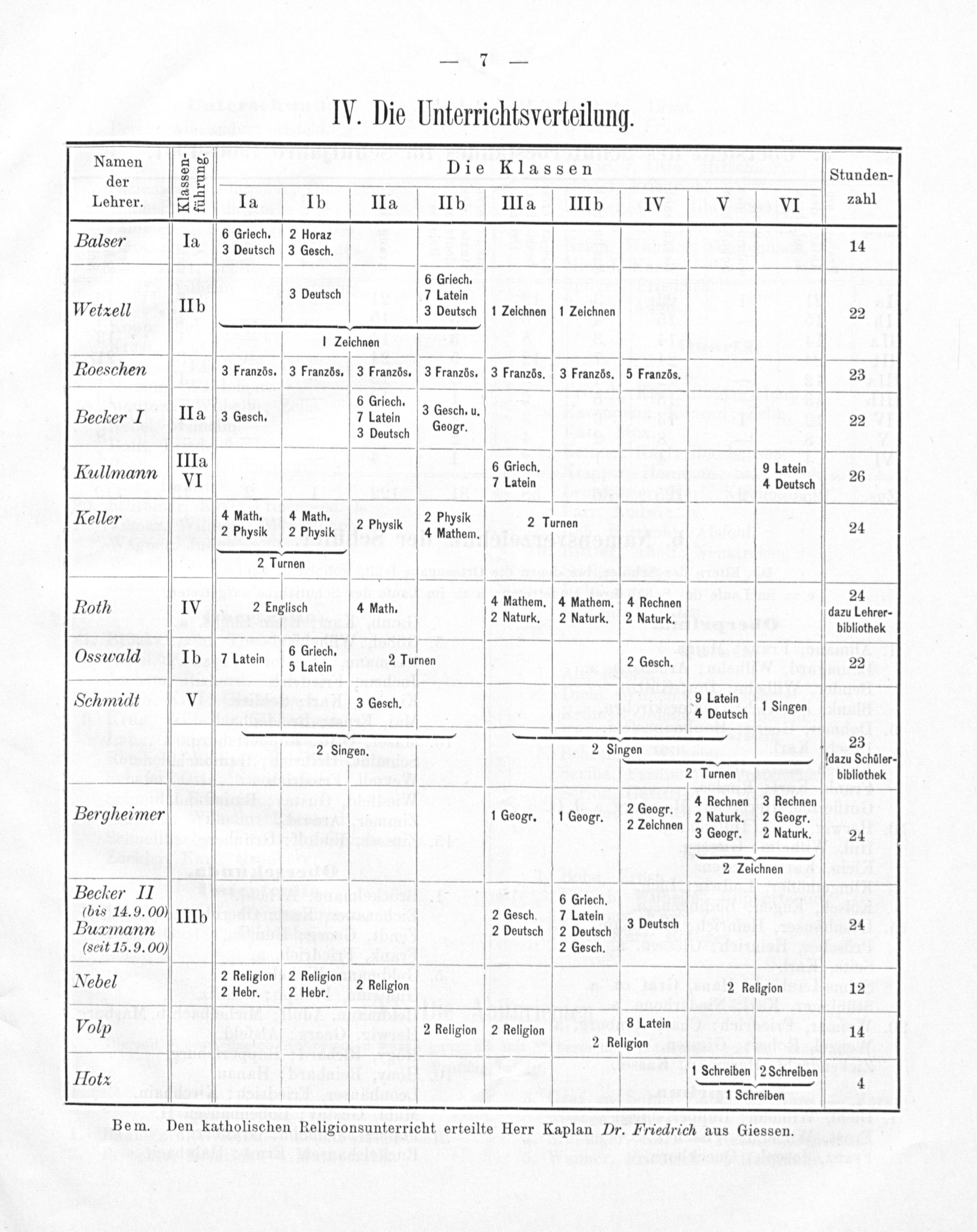 Bem. Den katholischen Religionsunterricht erteilte Herr Kaplan Dr. Friedrich aus Giessen.