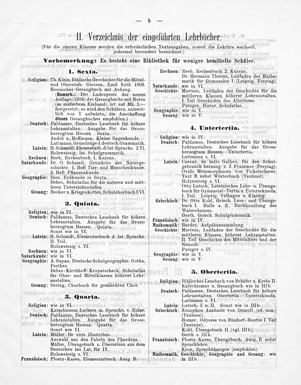 (Für die oberen Klassen werden die erforderlichen Textausgaben, soweit die Lektüre wechselt, jedesmal besonders bezeichnet.)