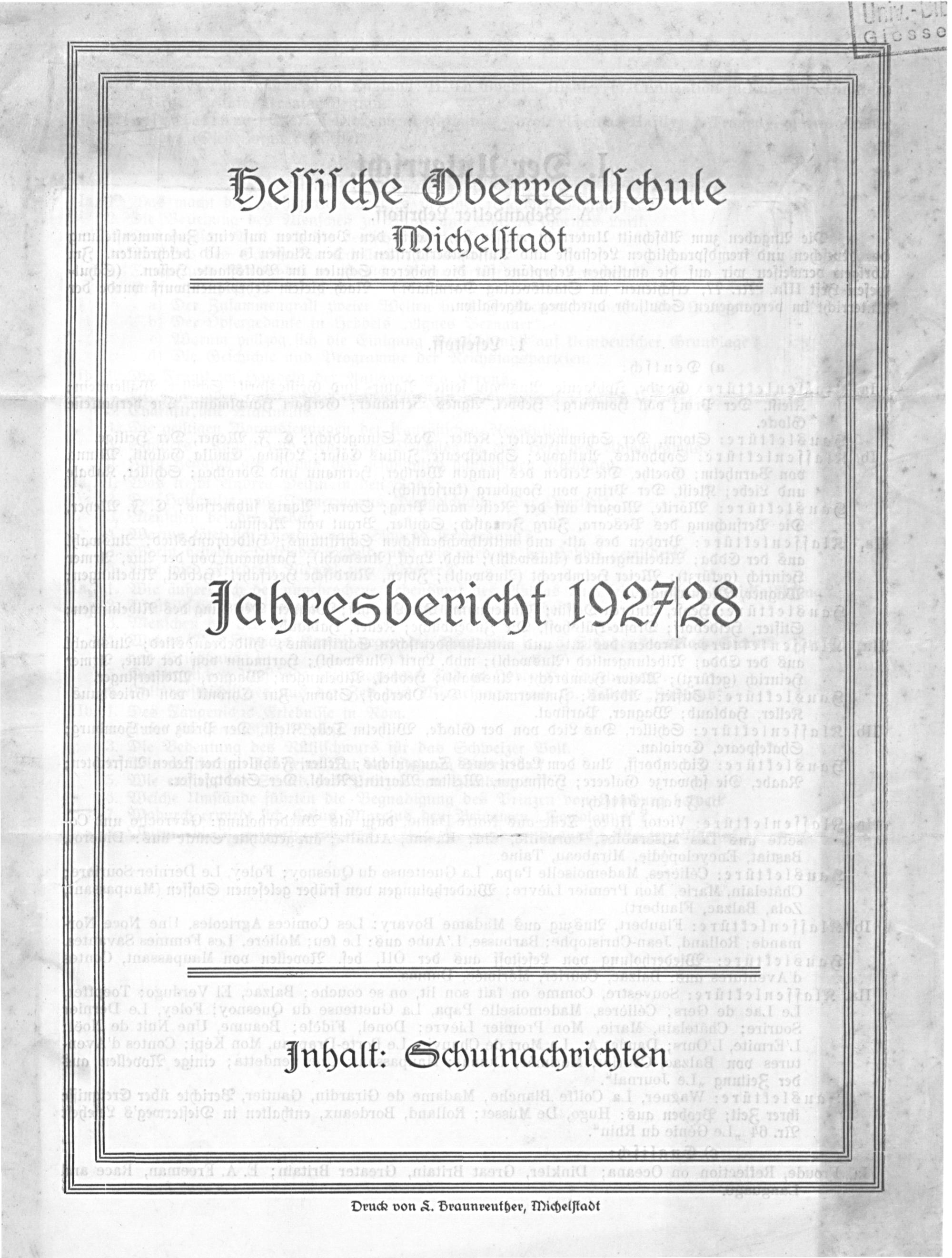 Michelſtadt 1 Jahresbevicht 192728