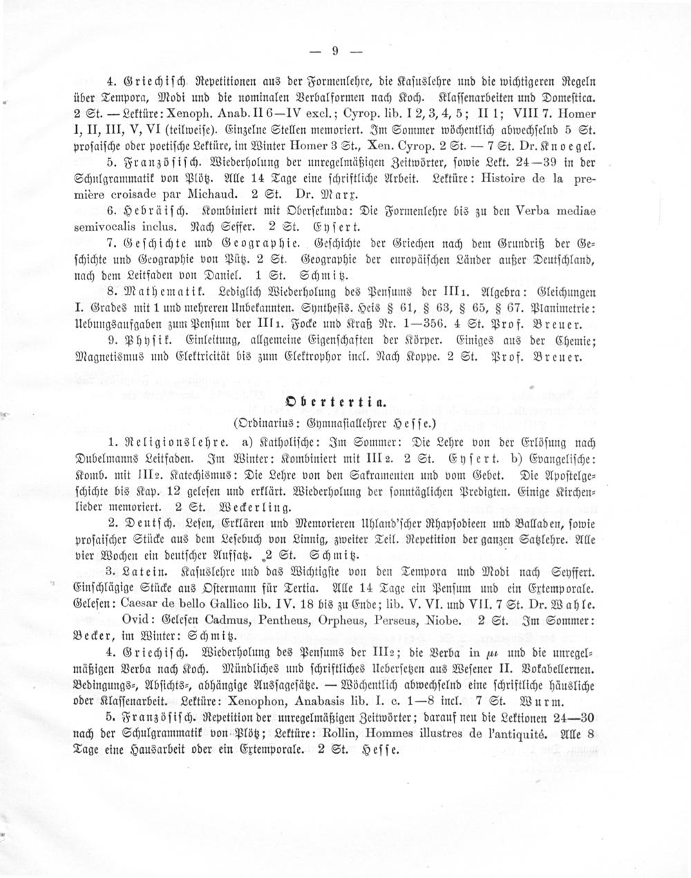 Obertertia. (Ordinarius: Gymnaſiallehrer Heſſe.)